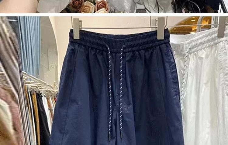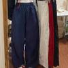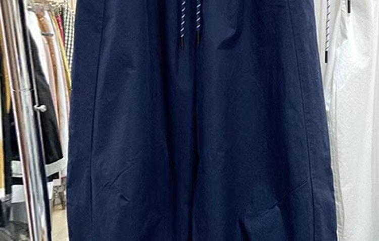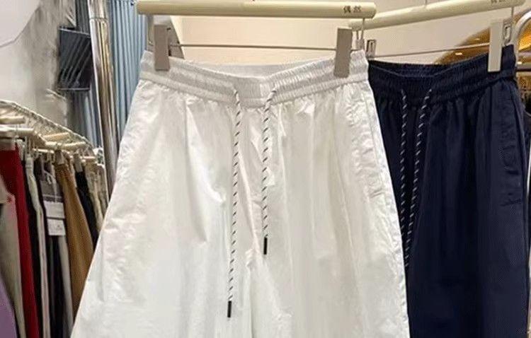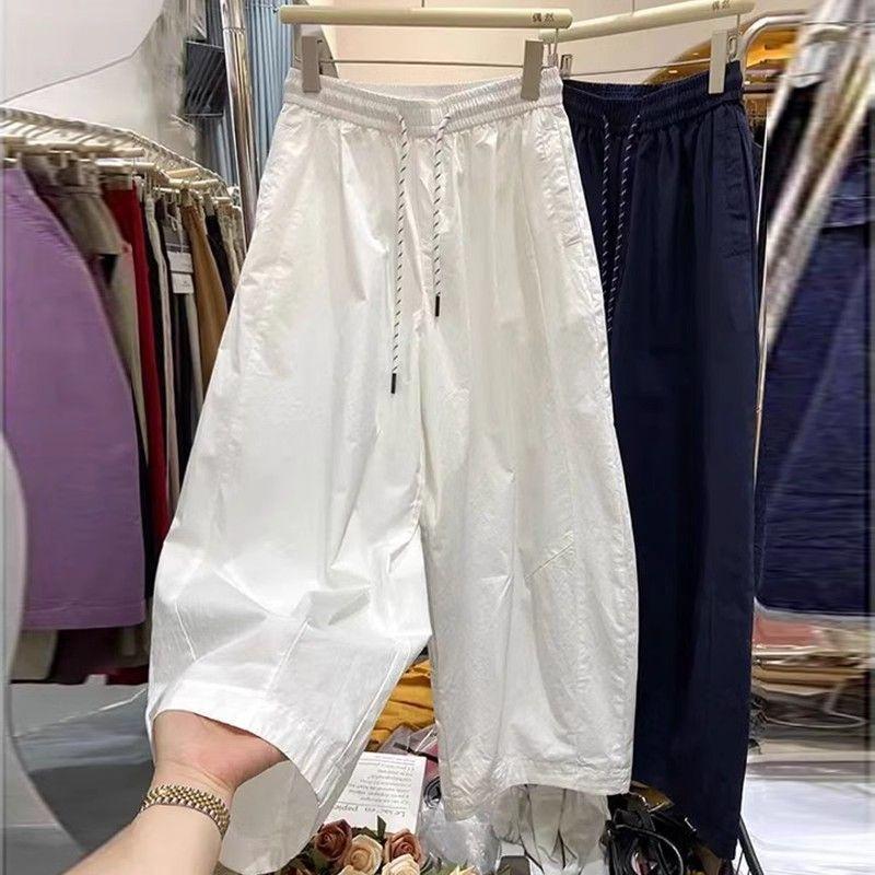 Calças de Verão Finas Soltas Emagrecedoras Casuais da Moda de Cintura Alta com Cordão, Simples Versátil Secagem Rápida Calças de Perna Larga