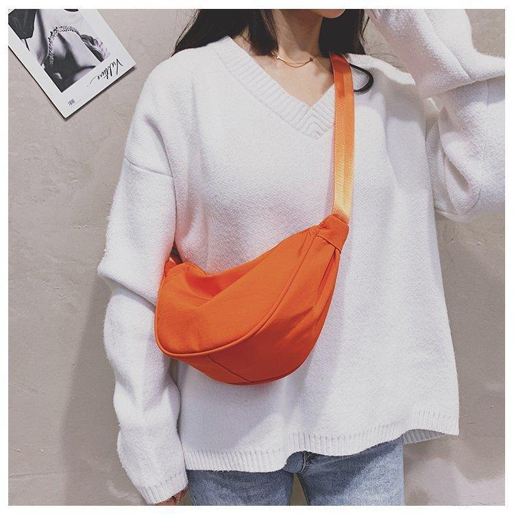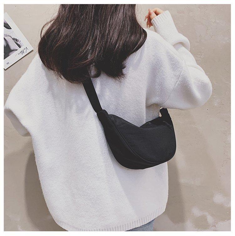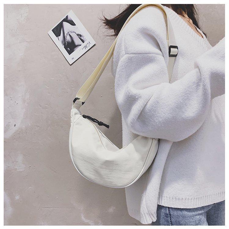 Bolsa Transversal de Nylon para Mulheres 2025 Nova Bolsa Trendy Dumpling Bolsa Pequena de Ombro Leve Bolsa de Axila Bolsa de Ombro Simples de Lona