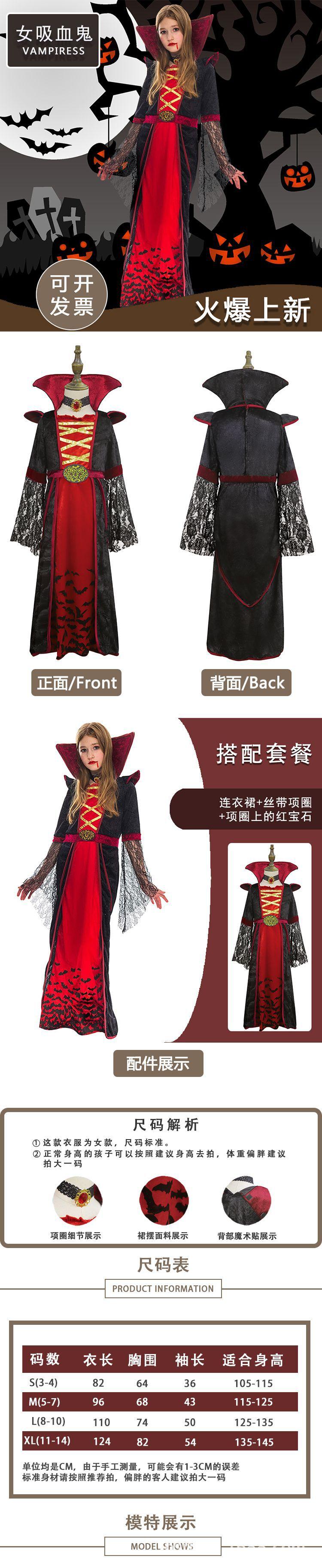 Fantasia Infantil de Vampiro para Halloween Saia para Meninas Fantasia de Terror Fantasia para Apresentação de Palco Roupas para Cosplay