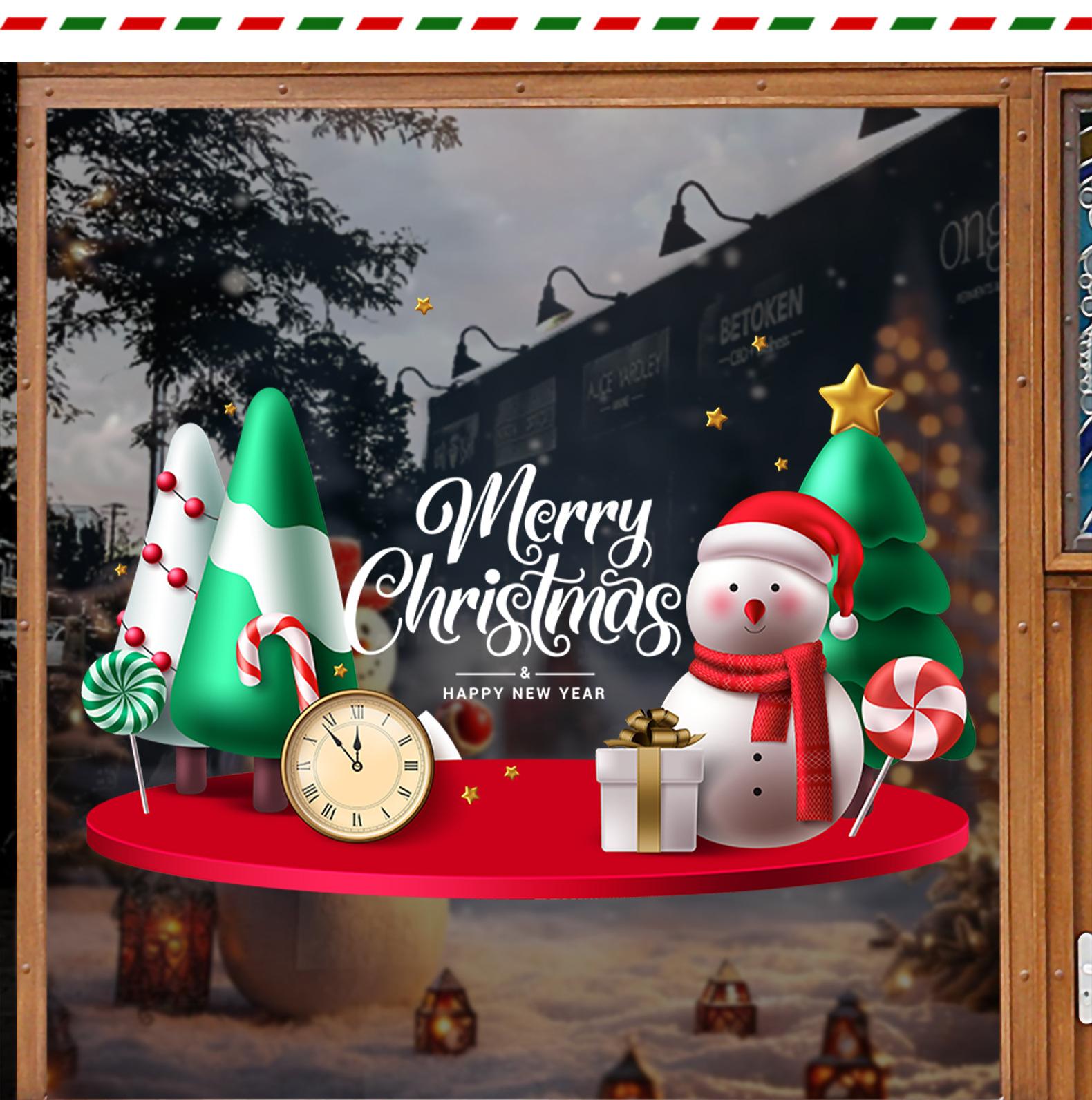 Decorações de Natal Transfronteiriças Adesivos Eletrostáticos Layout de Cena de Boneco de Neve Adesivos para Porta de Vidro Janela Árvore de Natal Novo Estilo