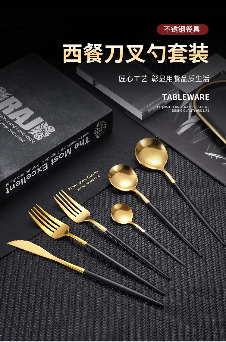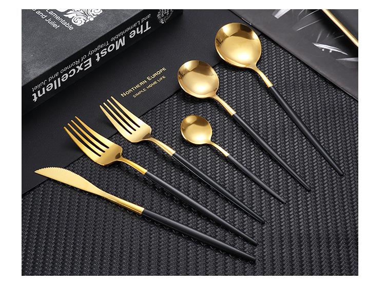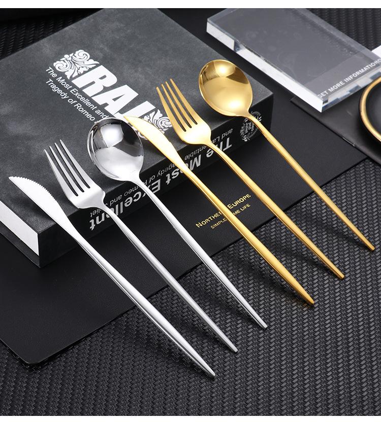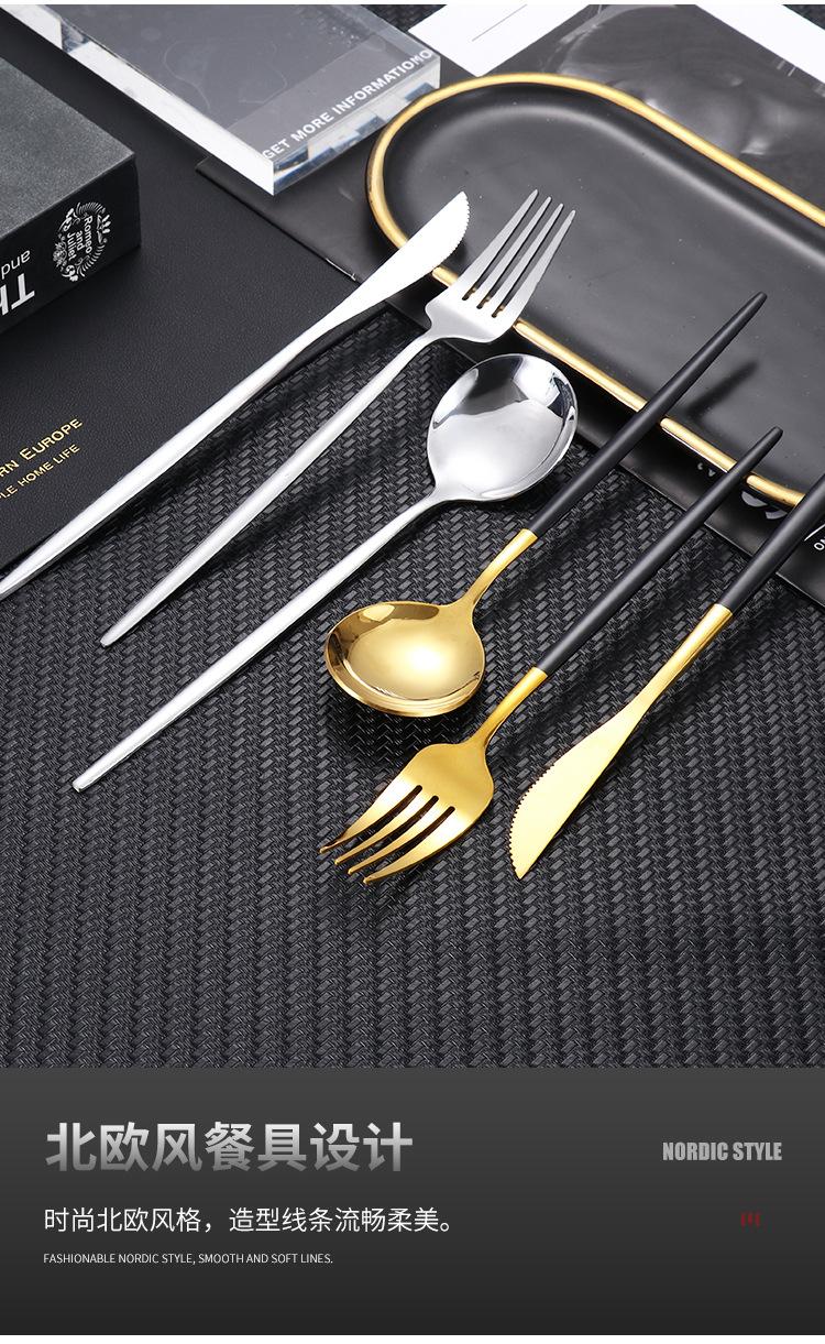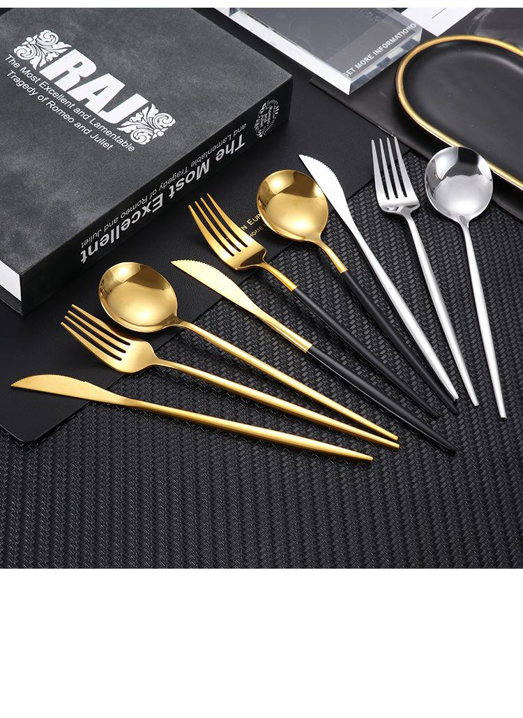 Processamento Talheres Portugueses Personalizados Comida Ocidental Faca e Garfo para Bife Conjunto de Quatro Peças Verde Escuro Dourado Faca, Garfo e Colher Hashis Conjunto para Presente