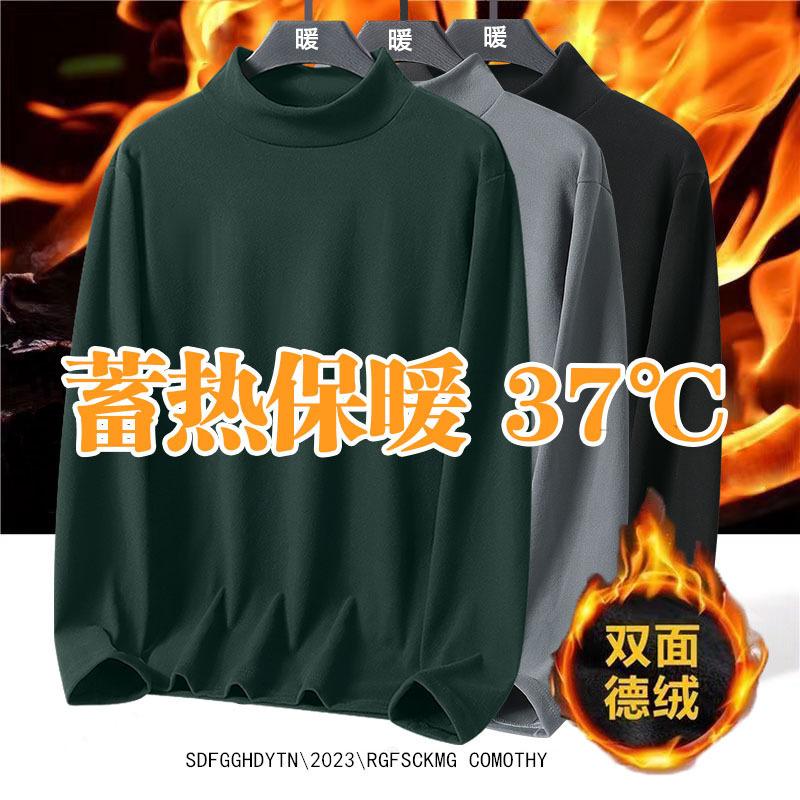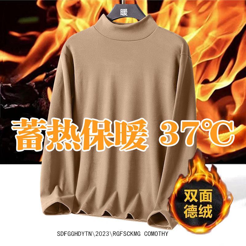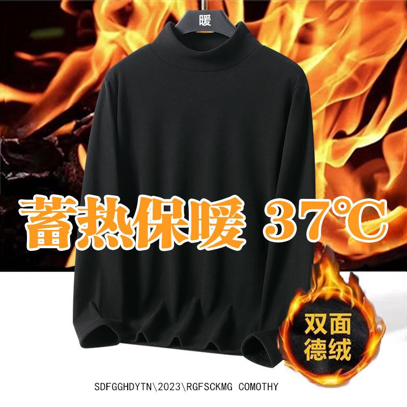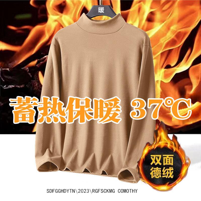Camisa de Base de Inverno Gola Alta Masculina Outono e Inverno Veludo Dupla Face Gola Média Espessada Interna Manga Longa para Homens
