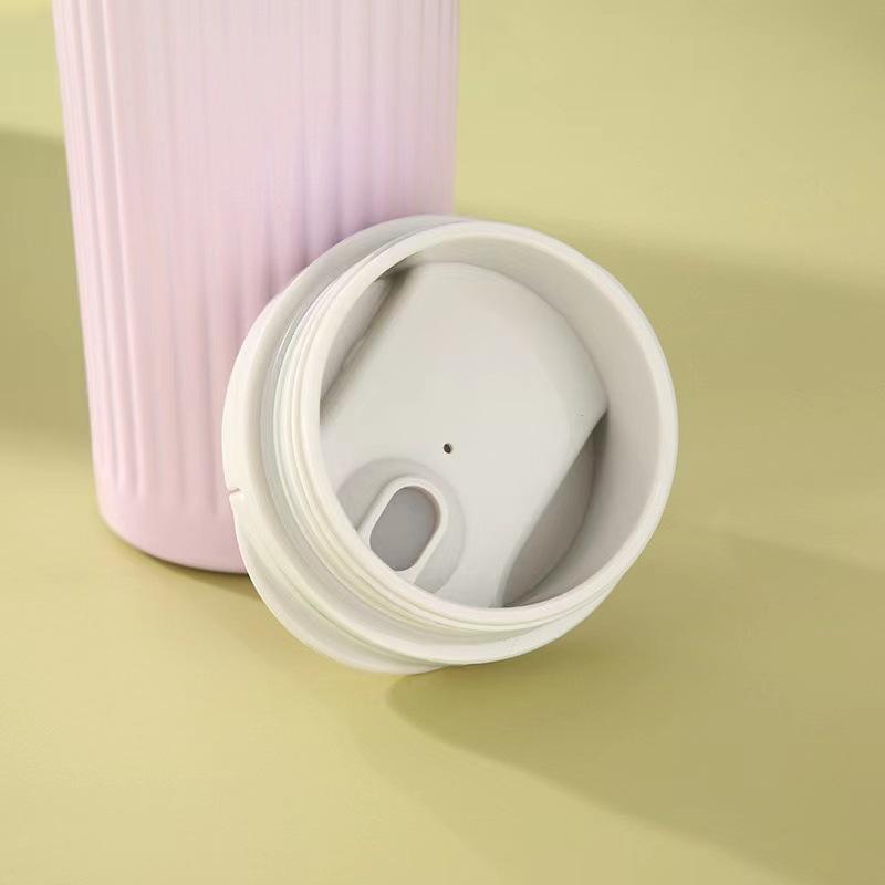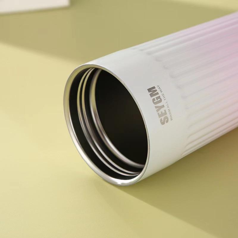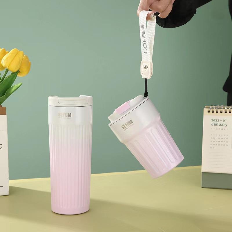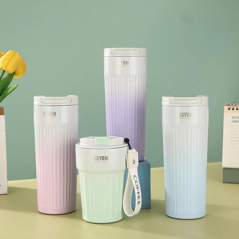 Nova caneca de café listrada portátil simples gradiente aço inoxidável 304 copo térmico a vácuo duplo para beber diretamente copo para carro