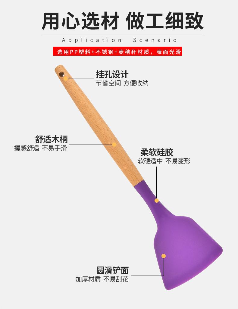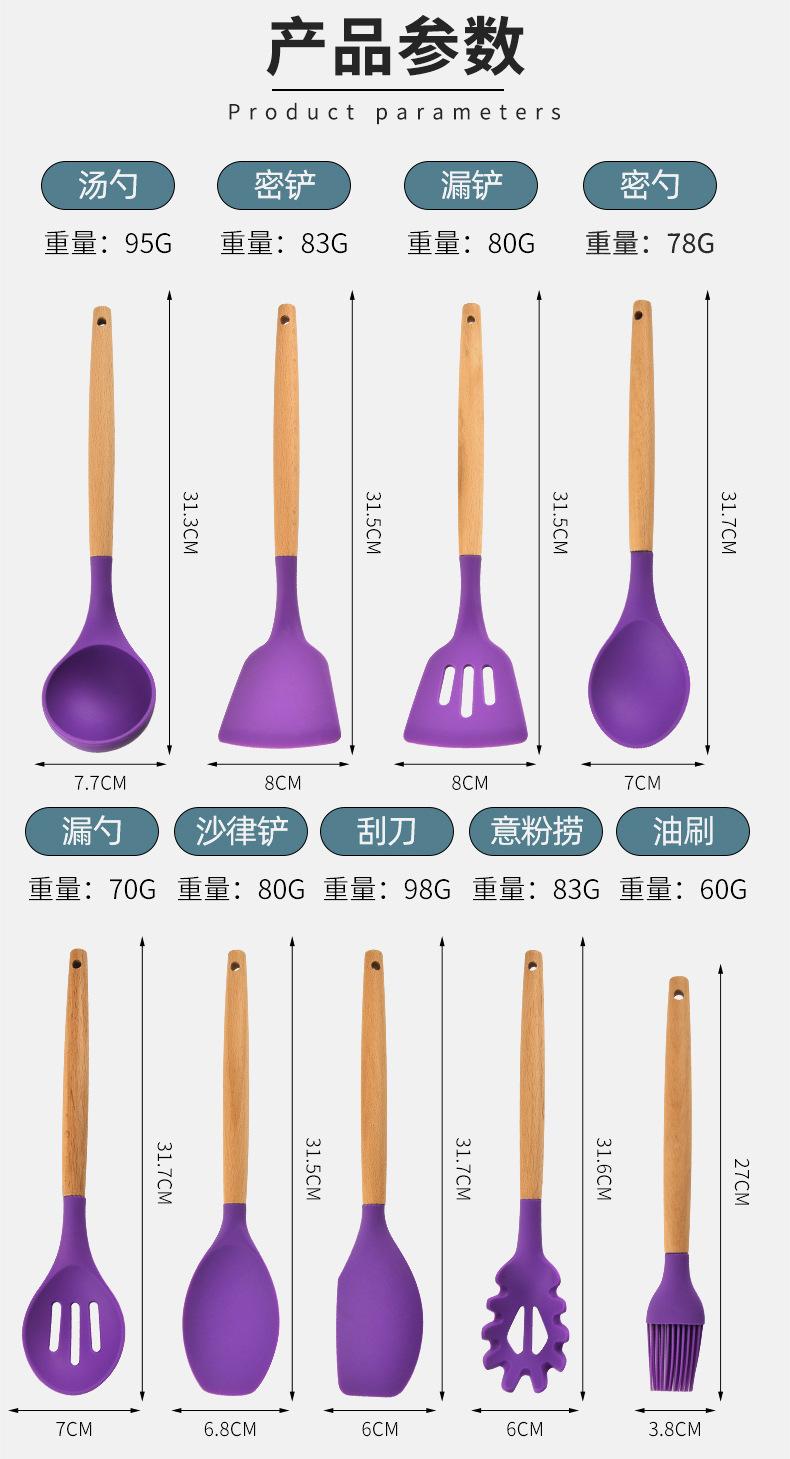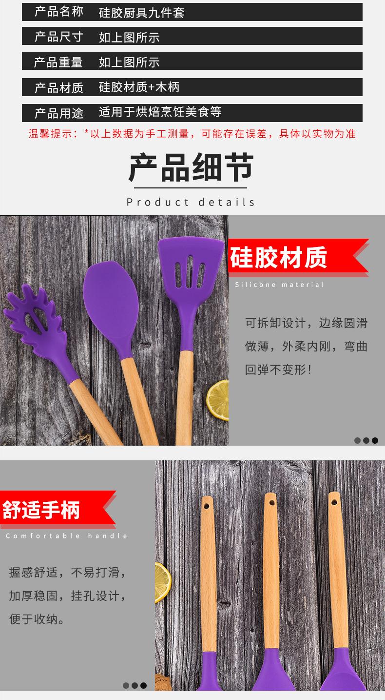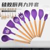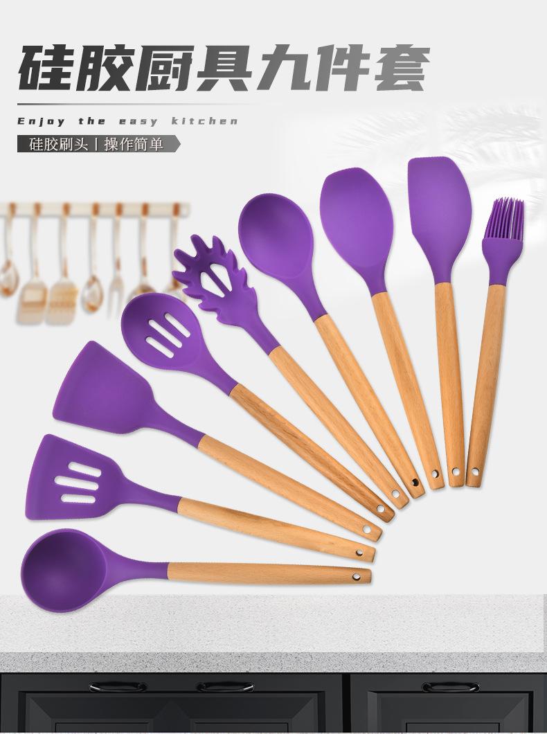 Silicone kitchenware nine-piece set, Soup spoon, Dense shovel, Spatula, Dense spoon, Colander, Salad shovel, S...