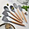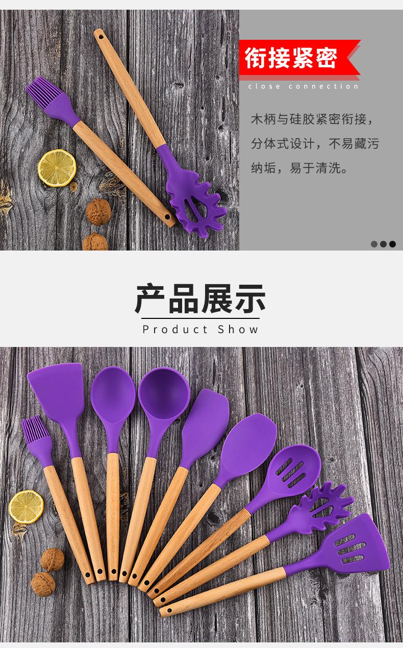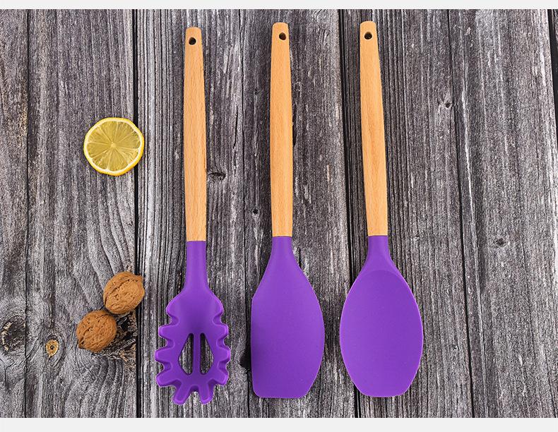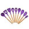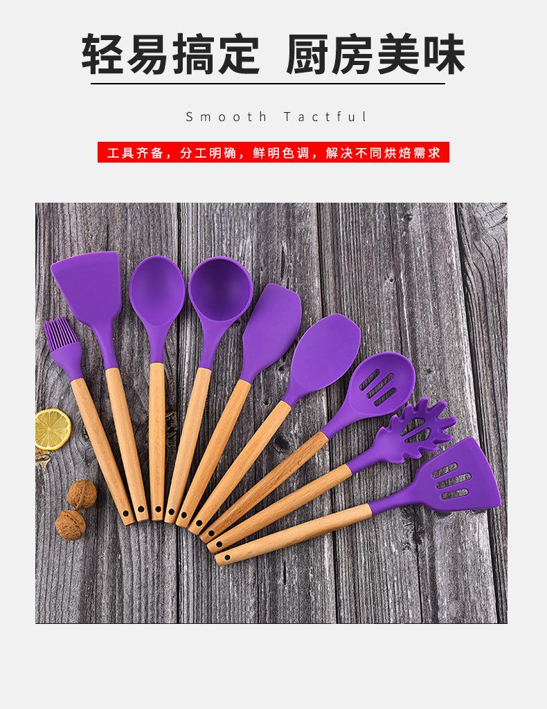 Conjunto de peças de utensílios de cozinha de silicone com cabo de madeira transfronteiriço da Amazon, nove peças, ferramentas de cozinha, espátula, colher