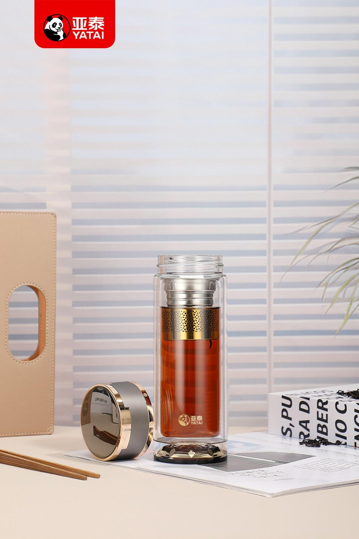 Yatai Copo de Vidro de Camada Dupla de Alta Qualidade Copo de Água Espessado Alto Borossilicato Negócios Portátil Grande Capacidade Copo Impressão