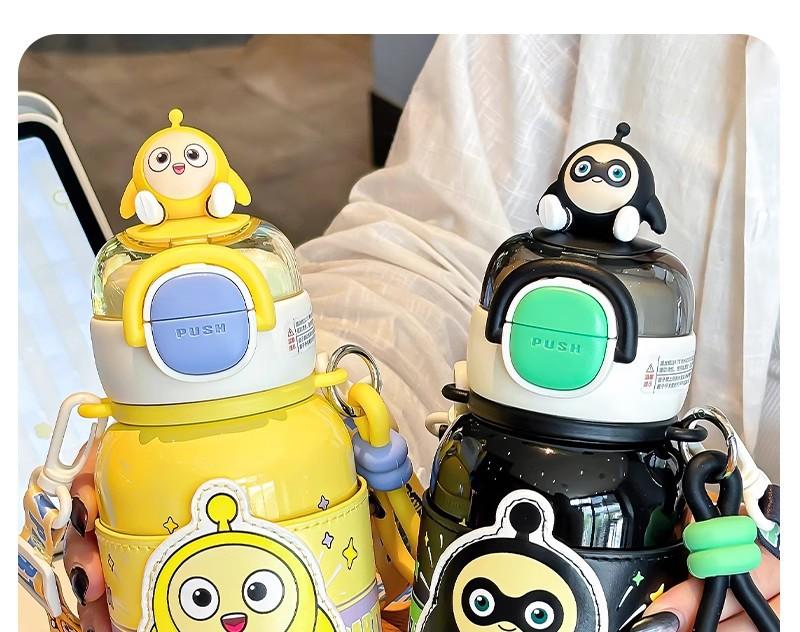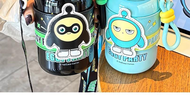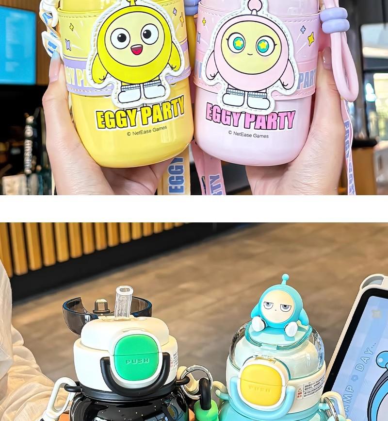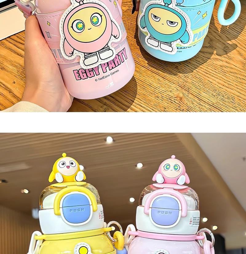 Copo Térmico Eggboy para Festa para Crianças e Meninas Indo para a Escola Copo Especial com Canudo para Estudantes Copo Portátil Diagonal para Bebida Dupla