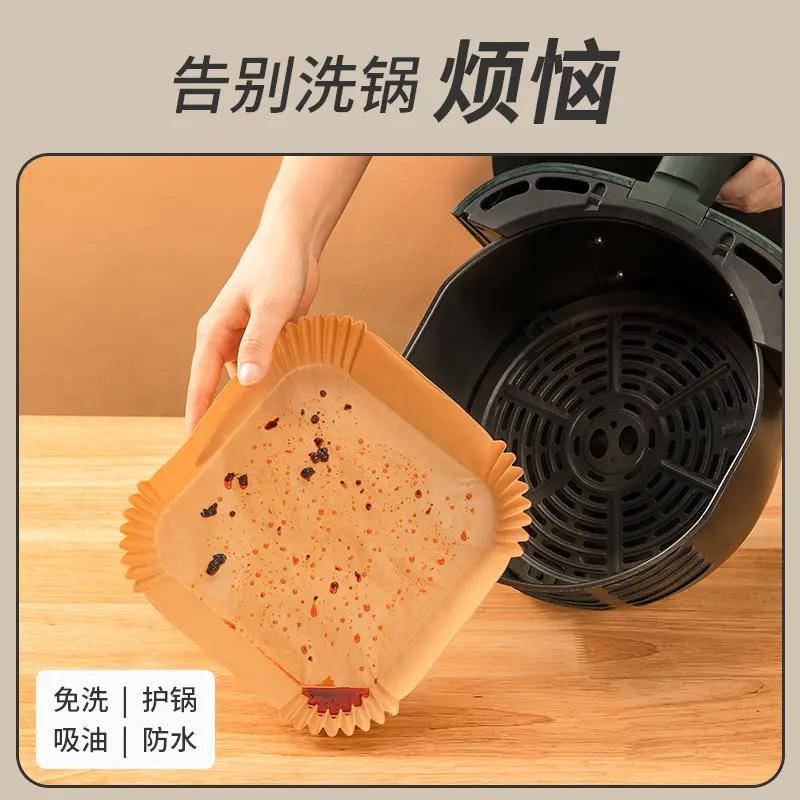Prato de Papel Especial para Air Fryer Quadrado Doméstico de Silicone Absorvente de Óleo Almofada de Papel Ferramenta de Cozimento Caixa para Alimentos Churrasco Cozinha