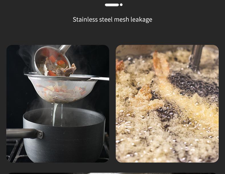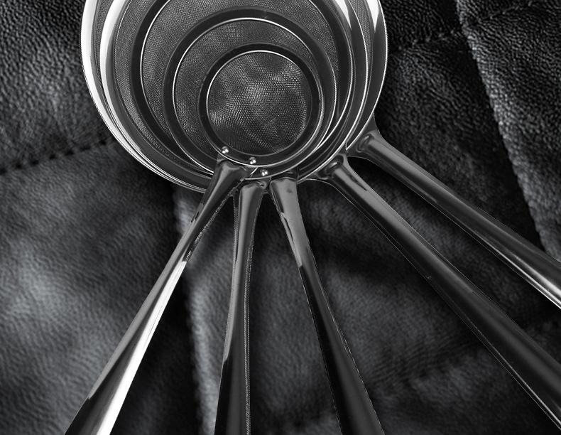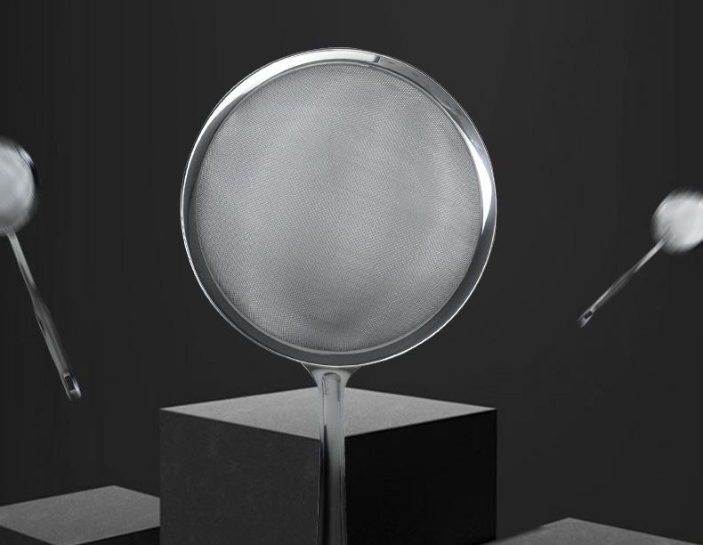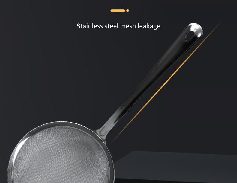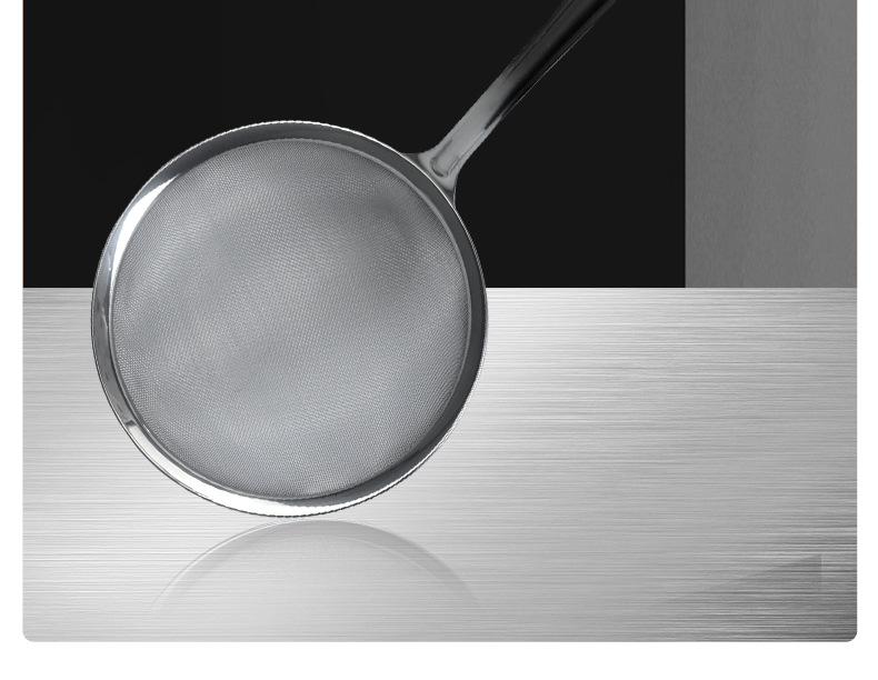 Escorredor multifuncional de aço inoxidável, coador de suco, leite de soja, coador doméstico para macarrão, suplemento alimentar, malha fina com pequenos furos, colher, coador de malha para cozinha