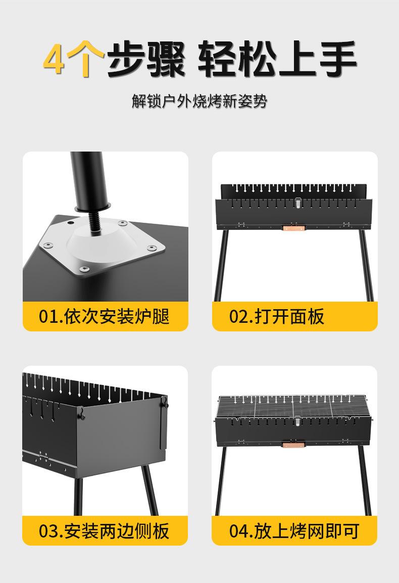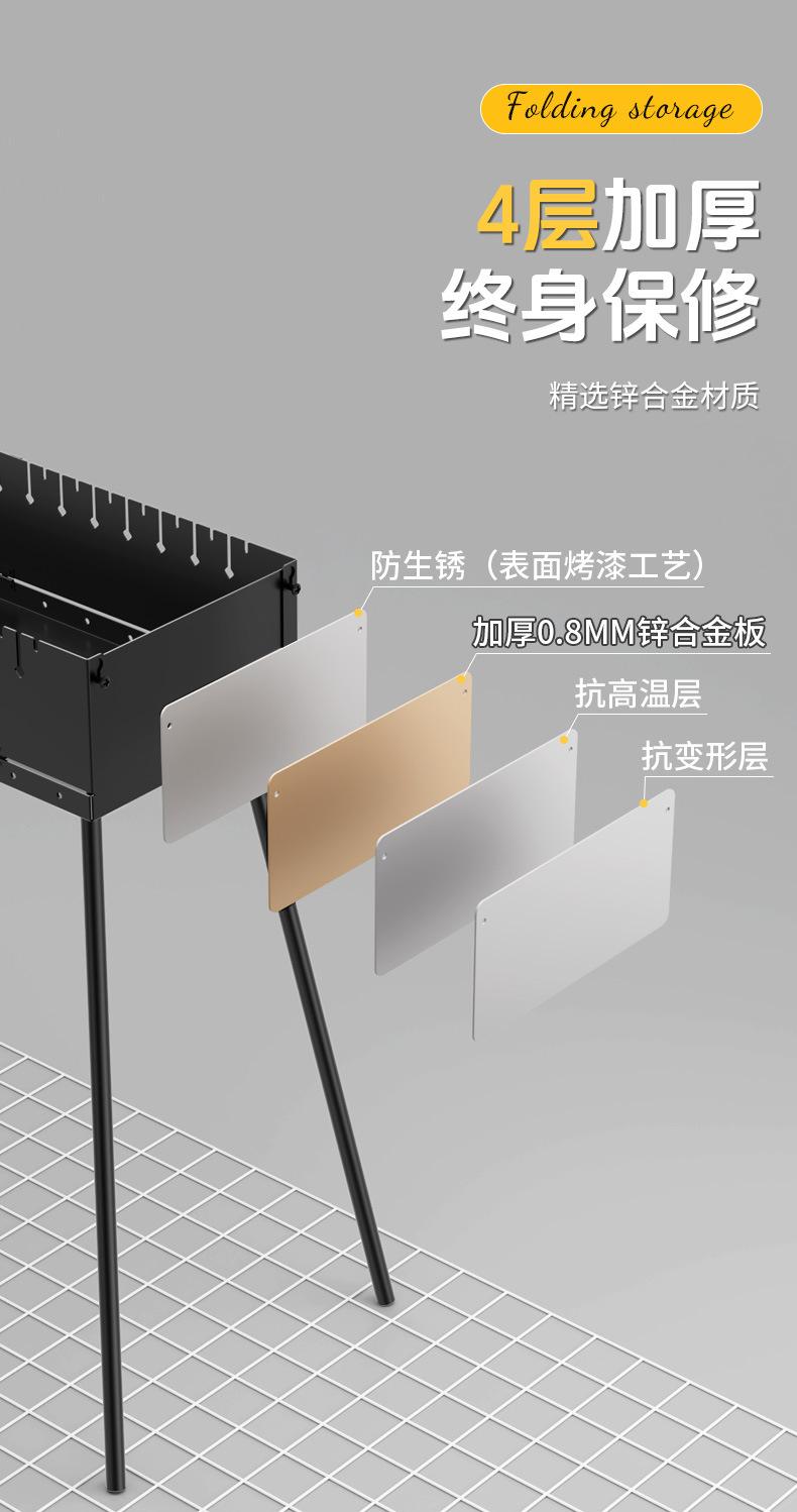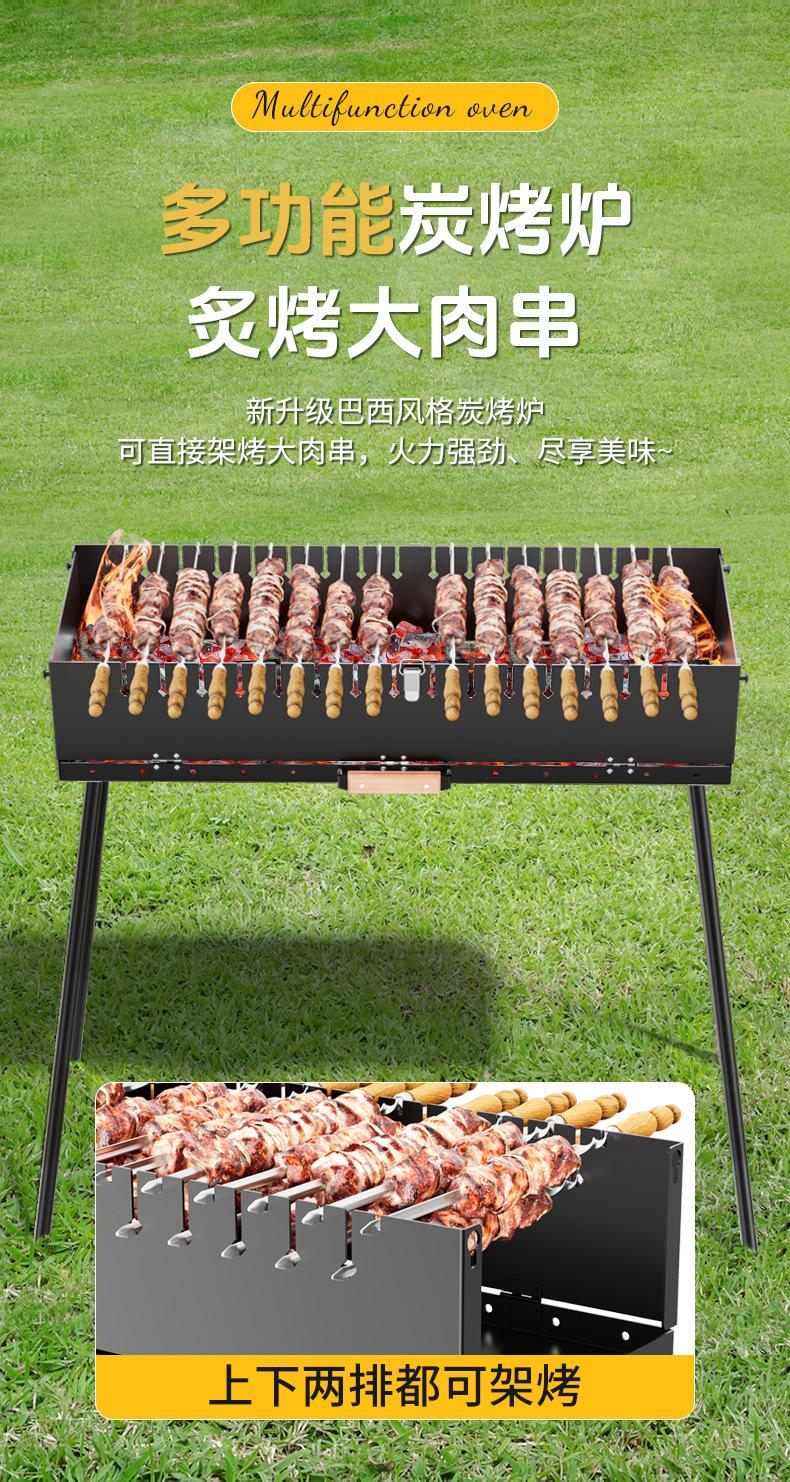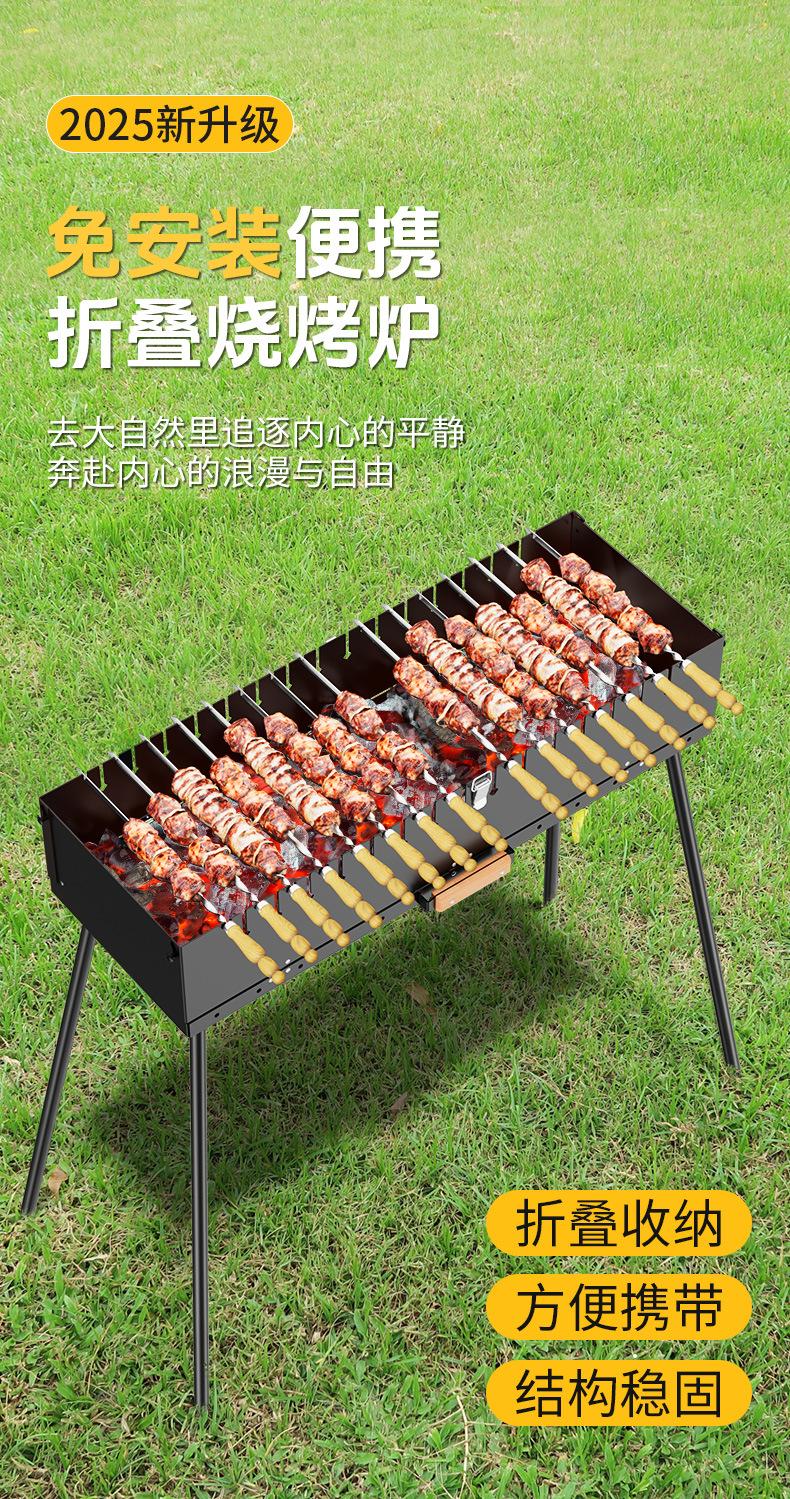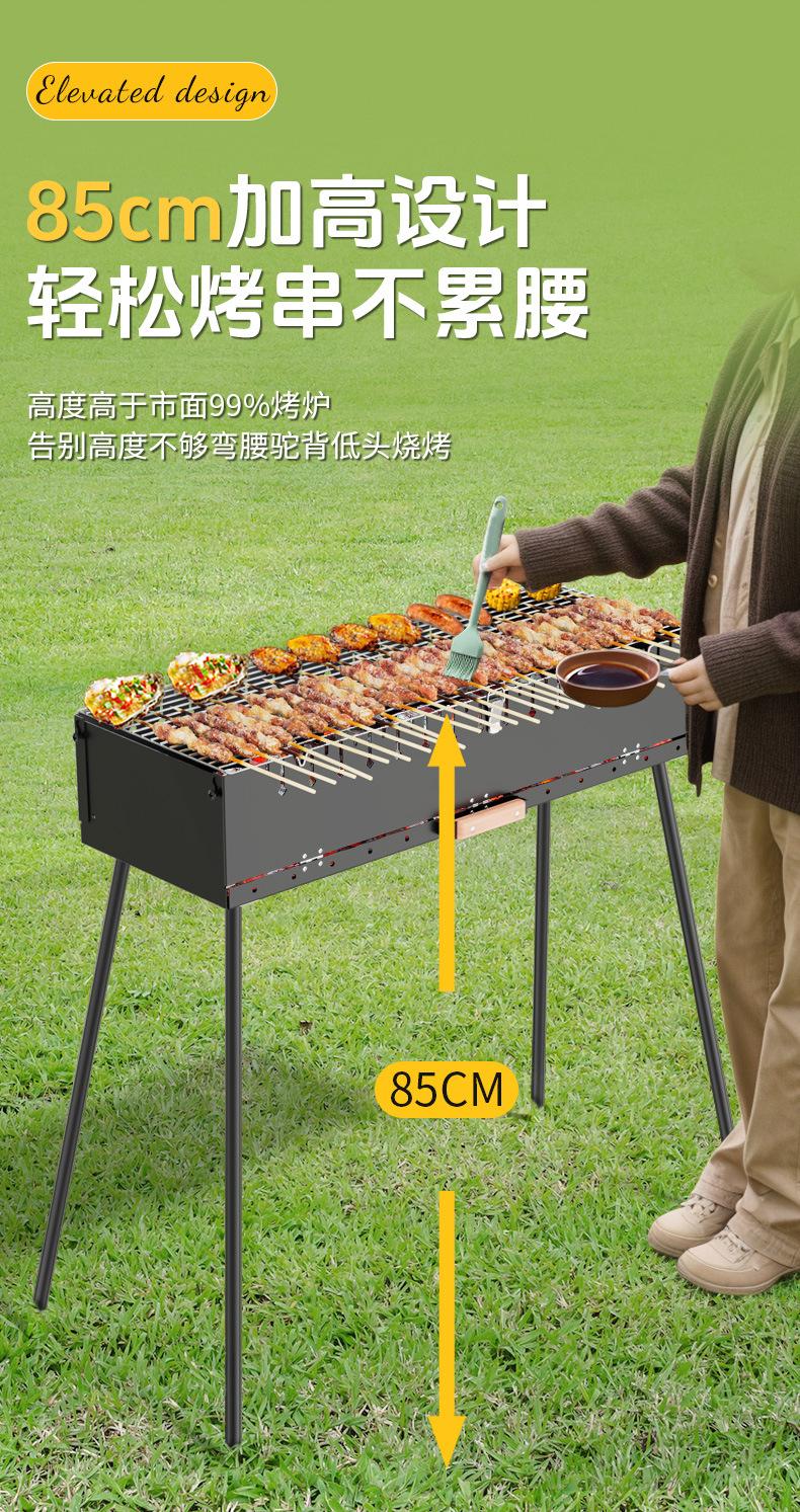 Grelha de Churrasco Multifuncional para Exterior Portátil Dobrável Removível Grelha a Carvão de Madeira para Exterior