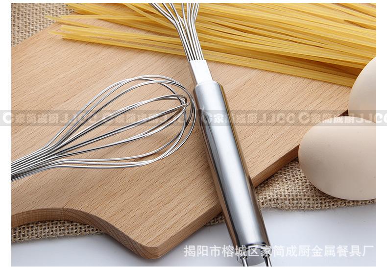 Fornecimento em estoque batedor de ovos de aço inoxidável com cabo redondo, liquidificador manual doméstico e máquina de fazer macarrão, ferramentas para assar