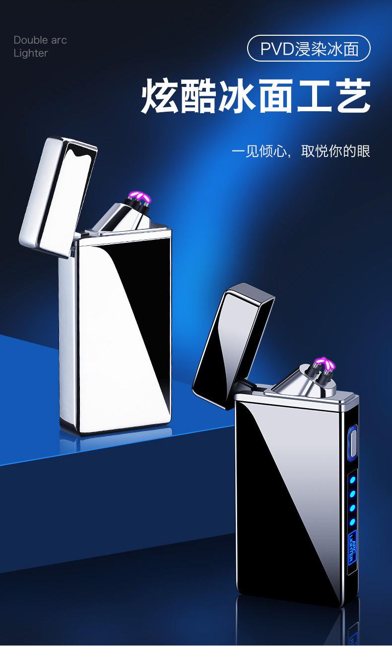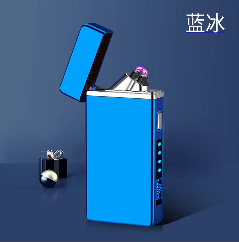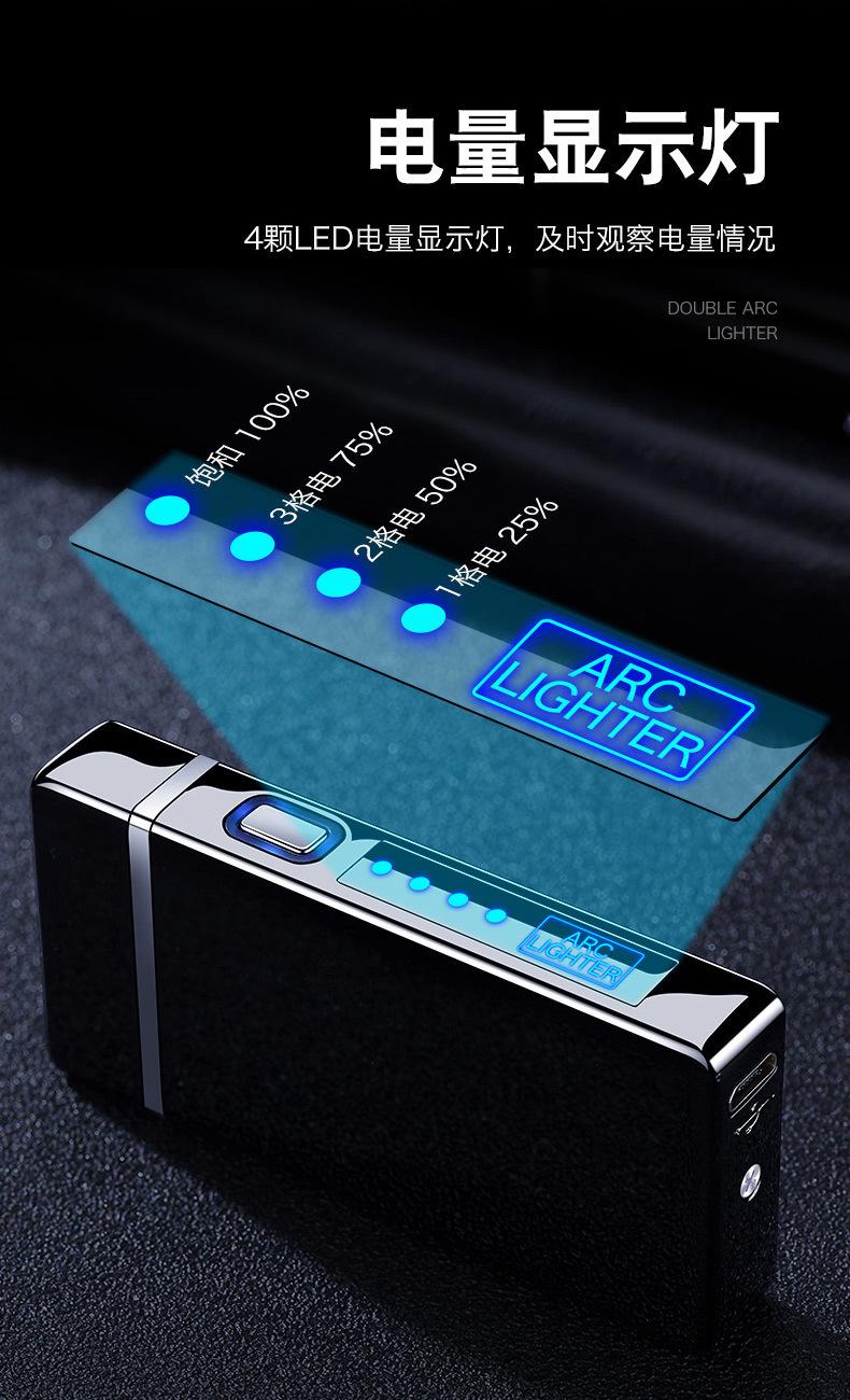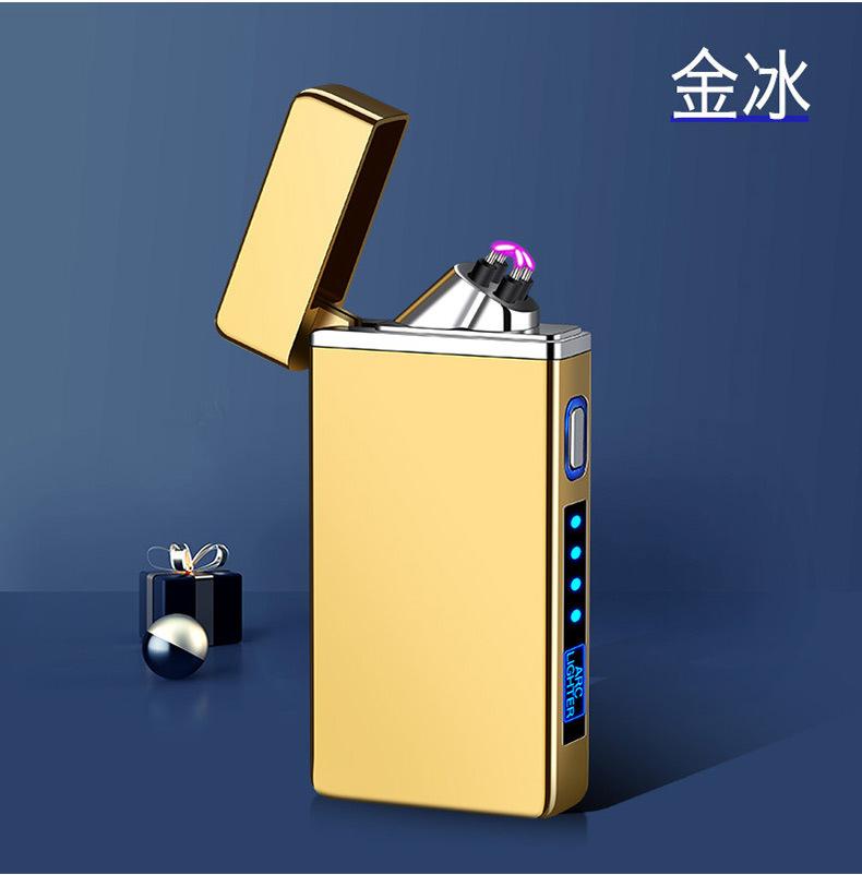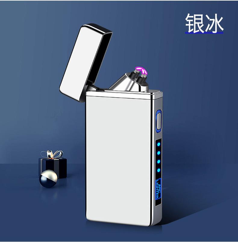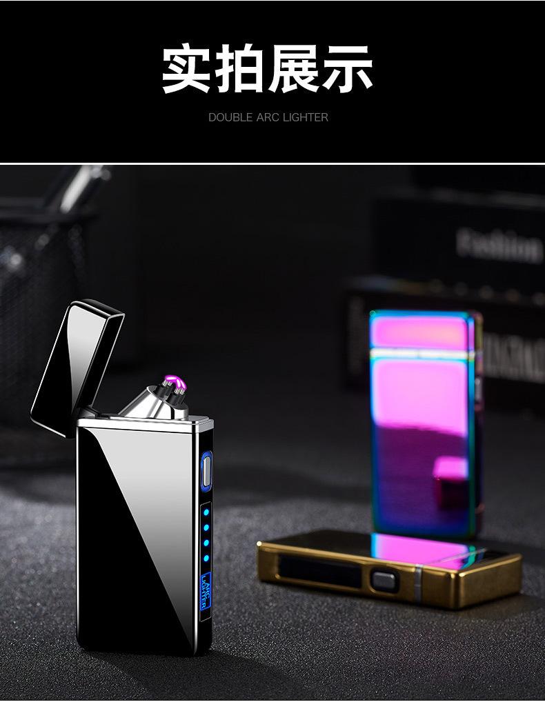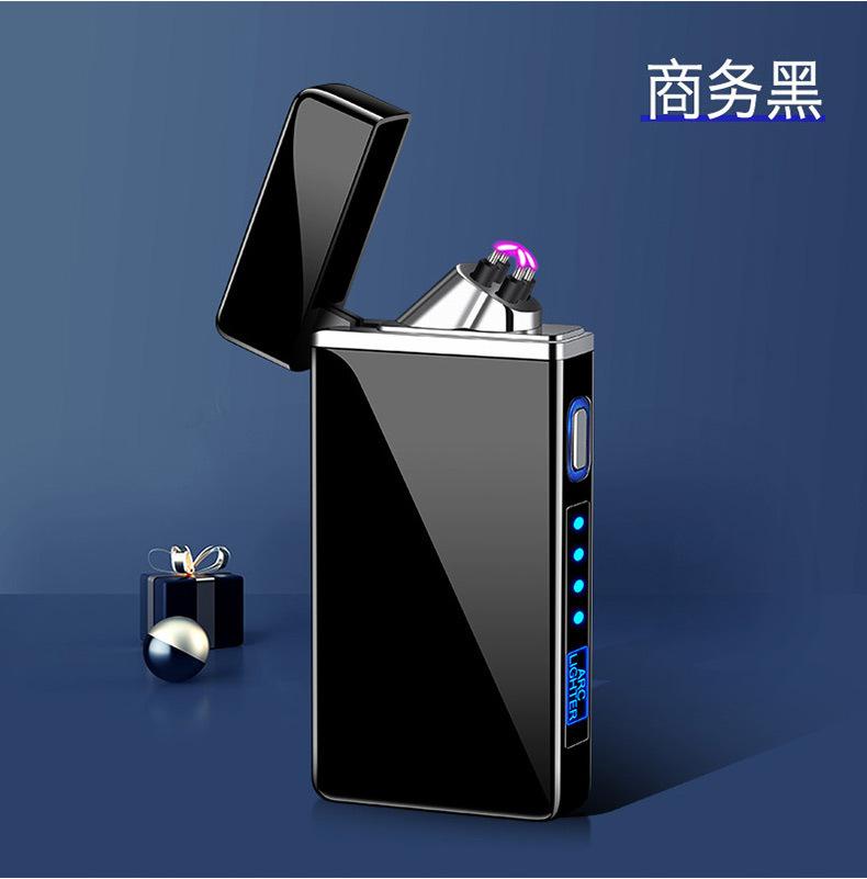 Isqueiro criativo USB de carregamento de arco duplo à prova de vento isqueiro display de potência real à prova de vento presente para homem