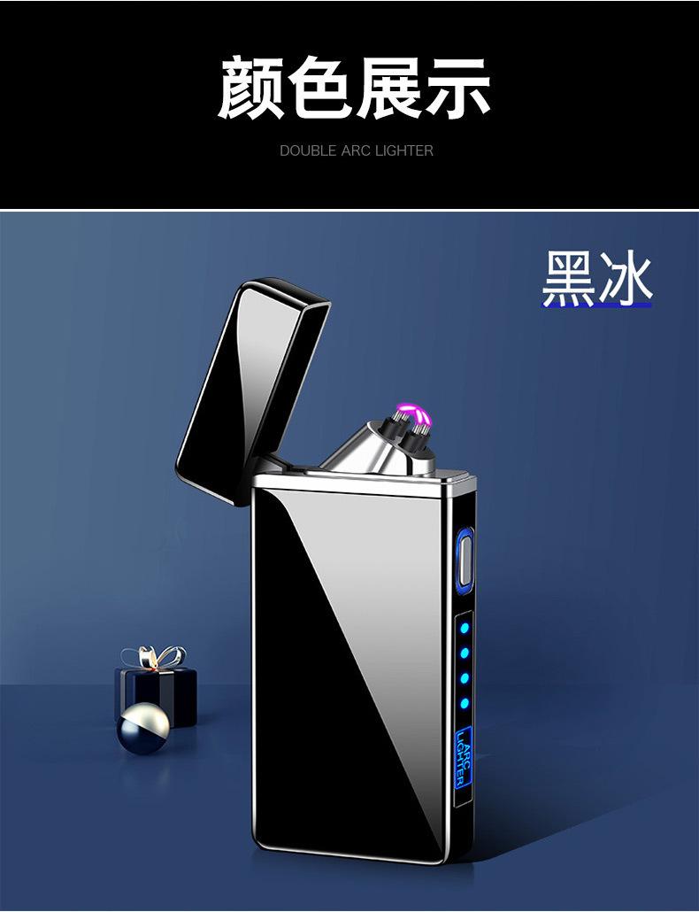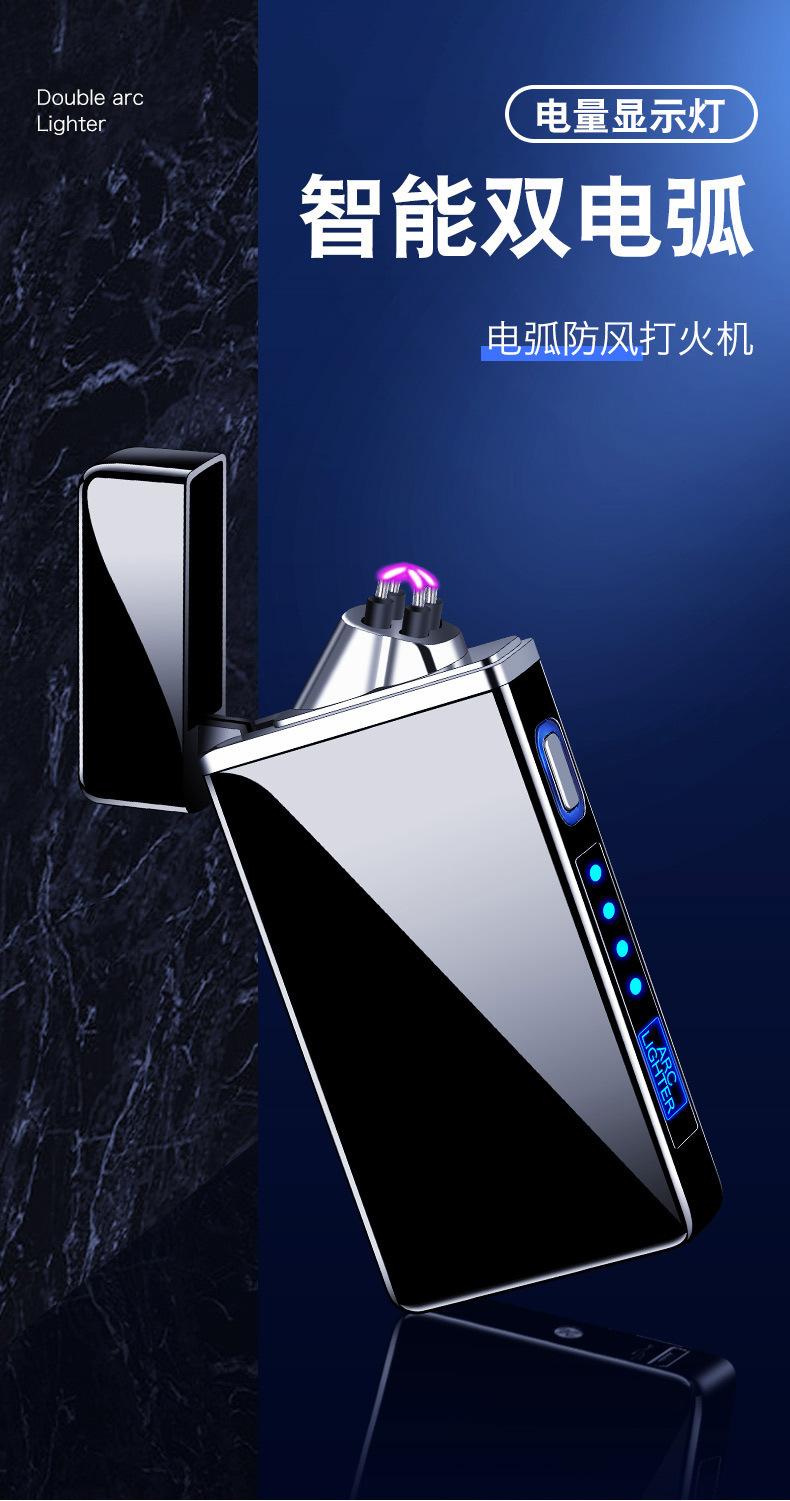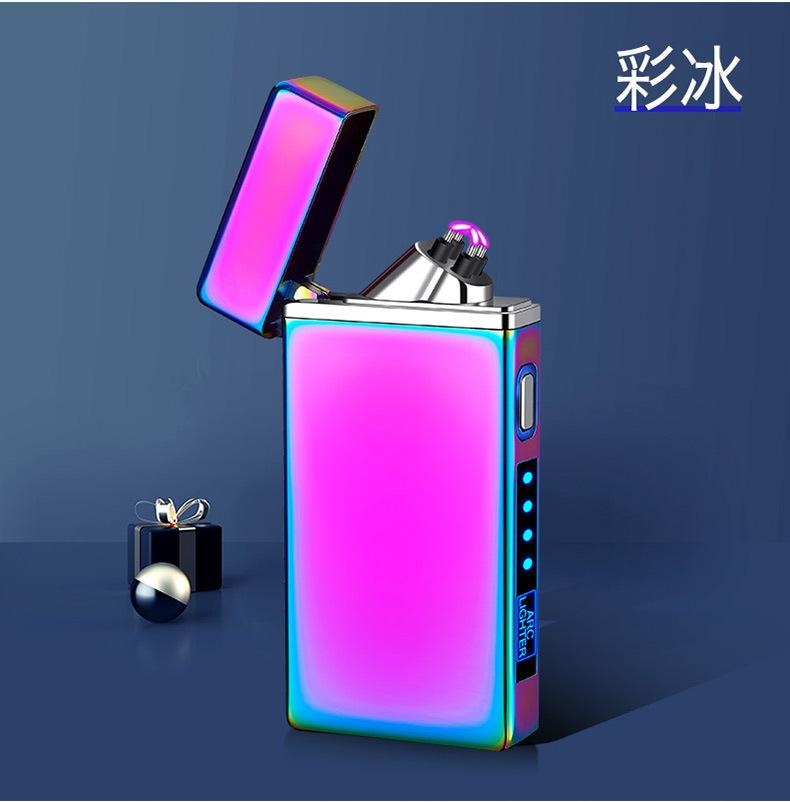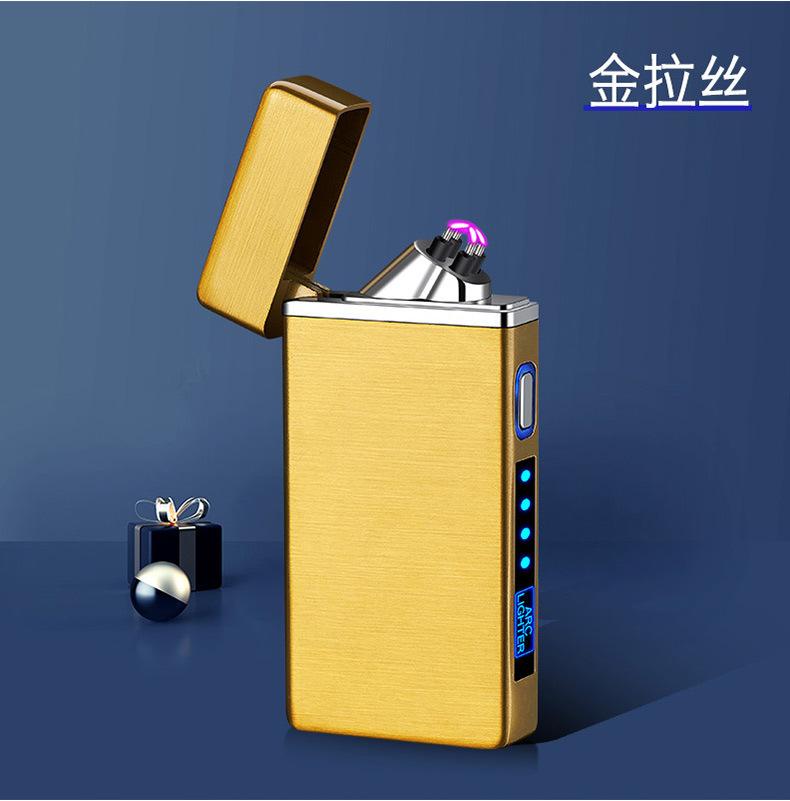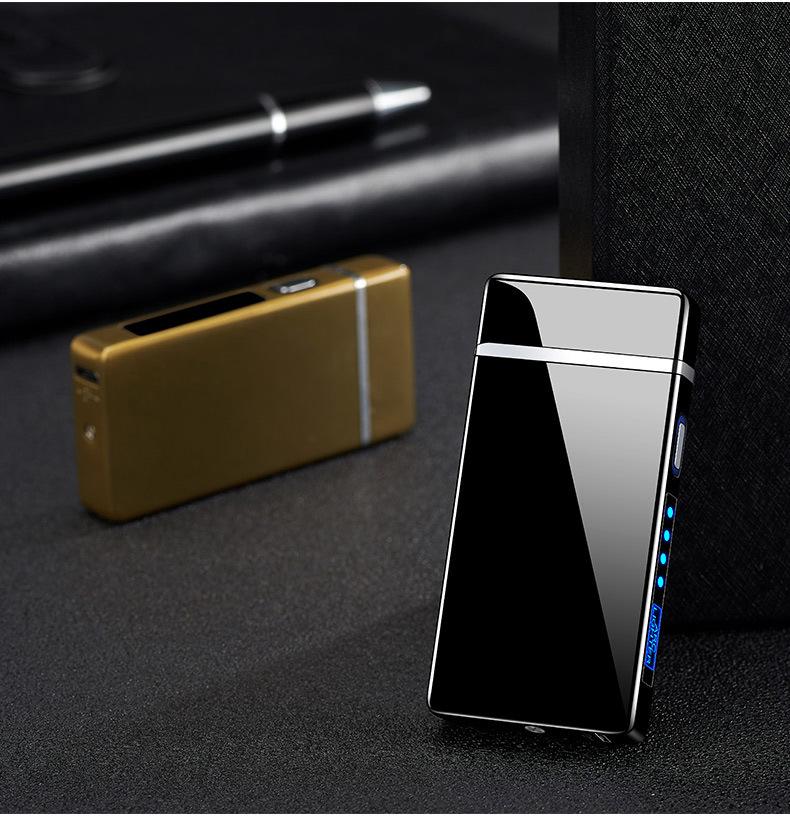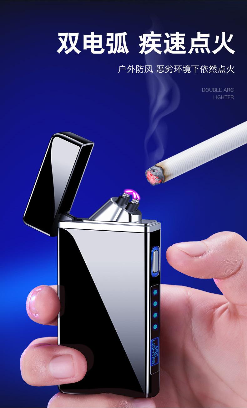 Isqueiro criativo USB de carregamento de arco duplo à prova de vento isqueiro display de potência real à prova de vento presente para homem
