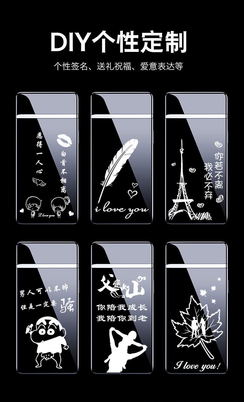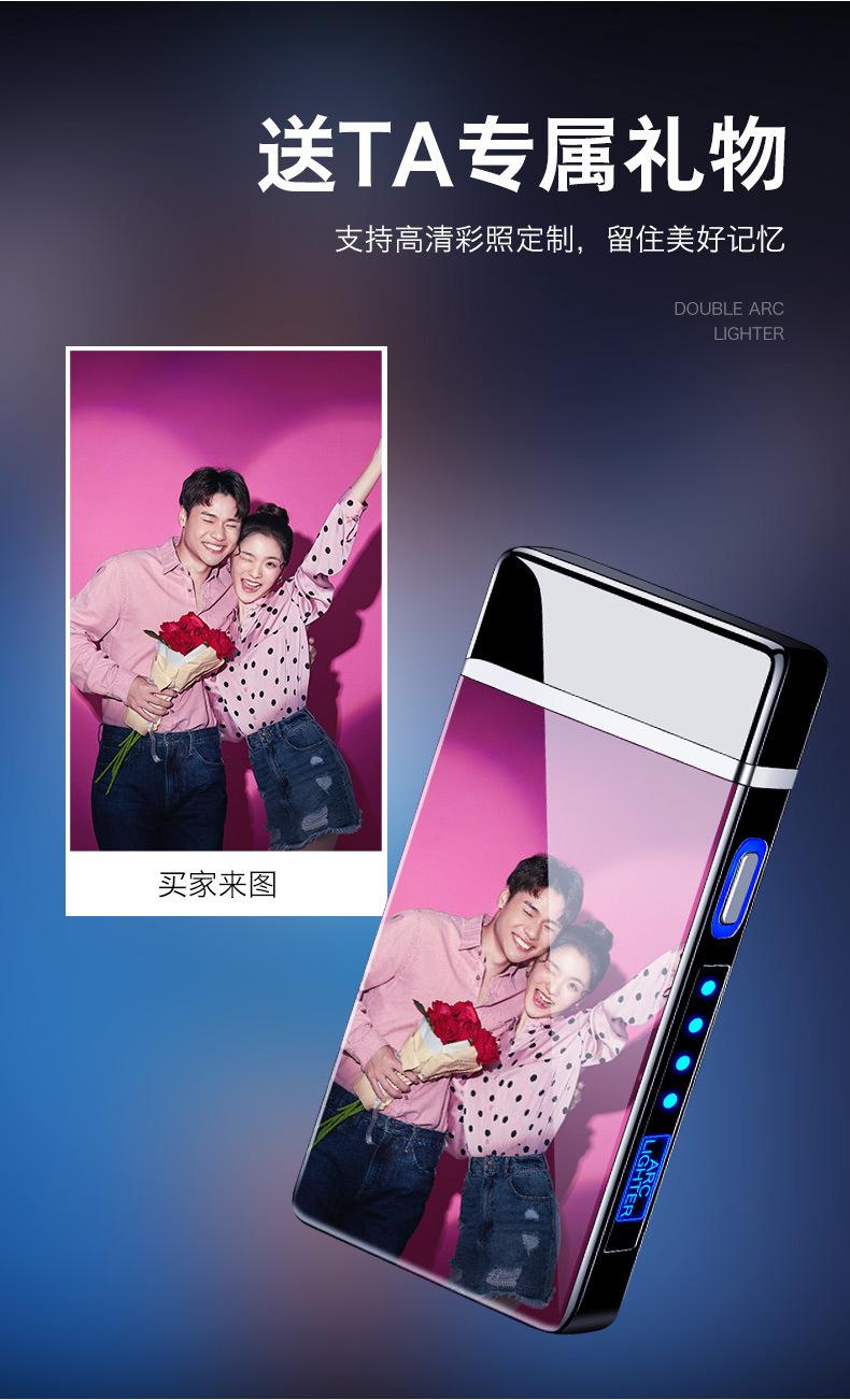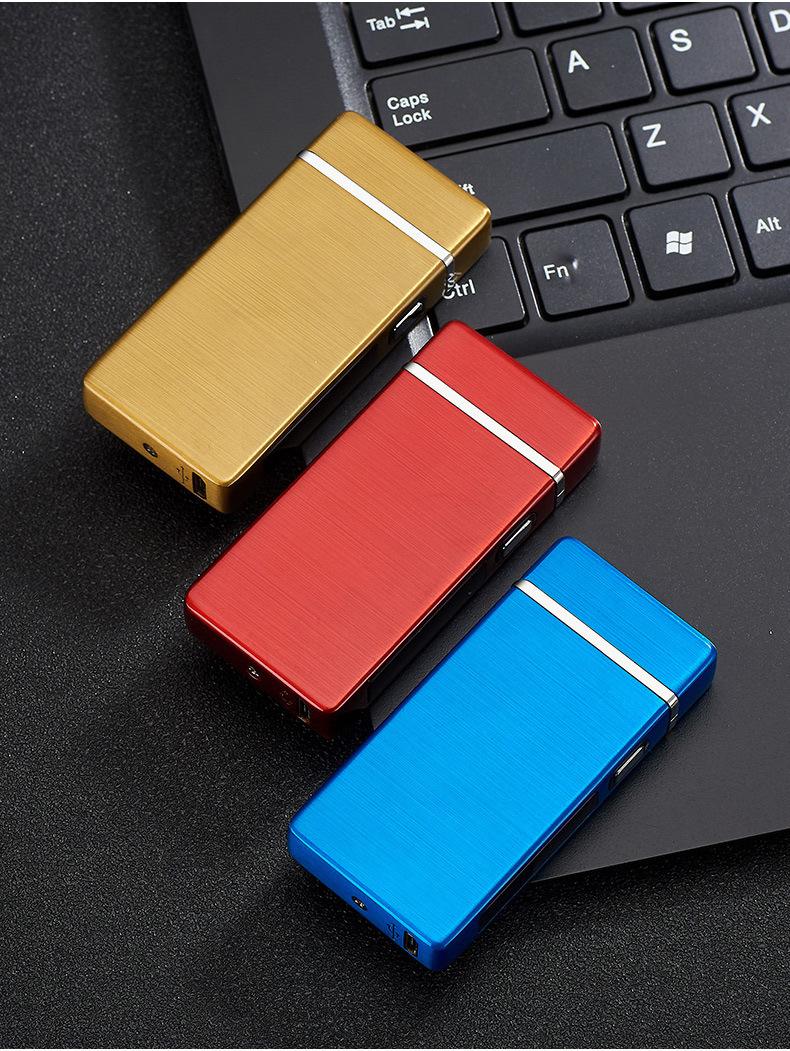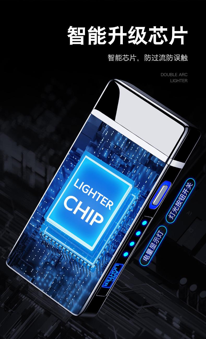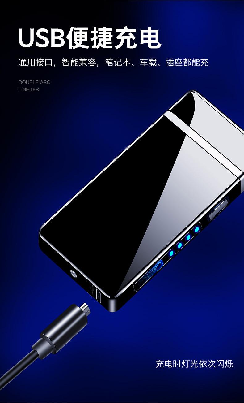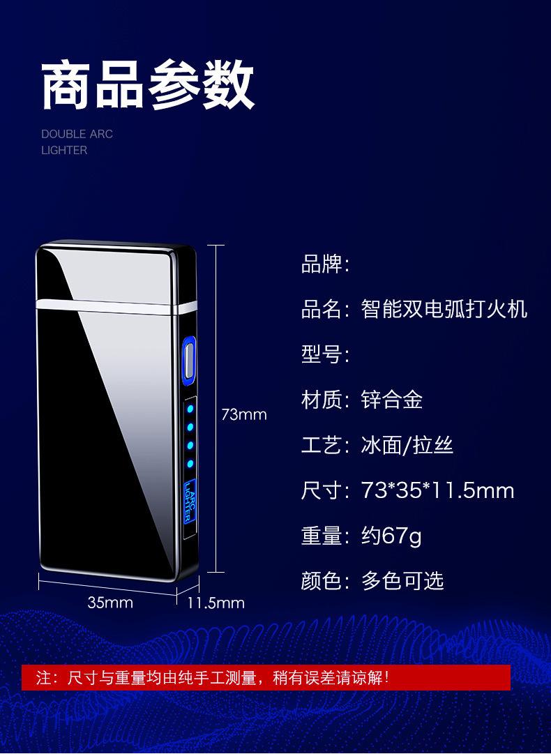 Isqueiro criativo USB de carregamento de arco duplo à prova de vento isqueiro display de potência real à prova de vento presente para homem