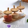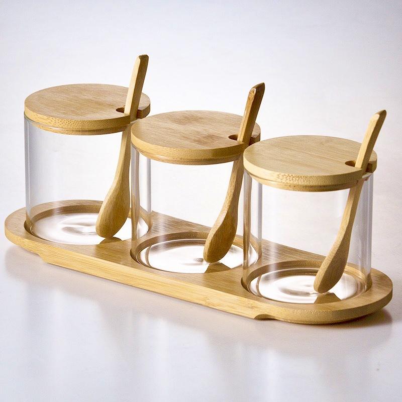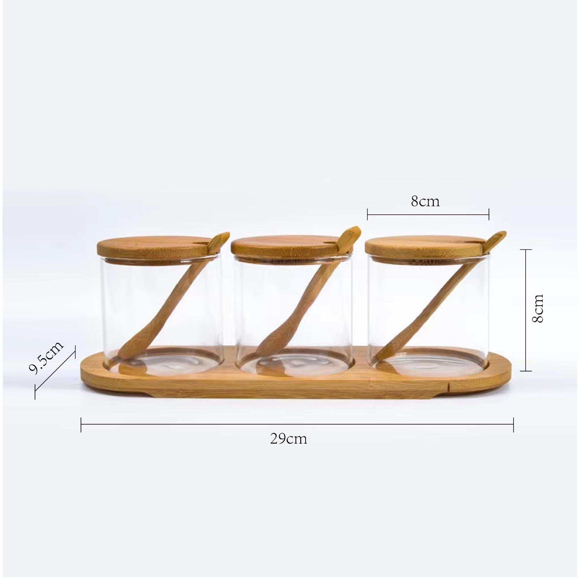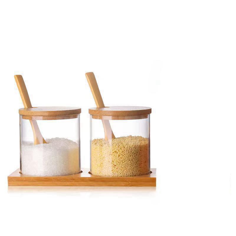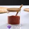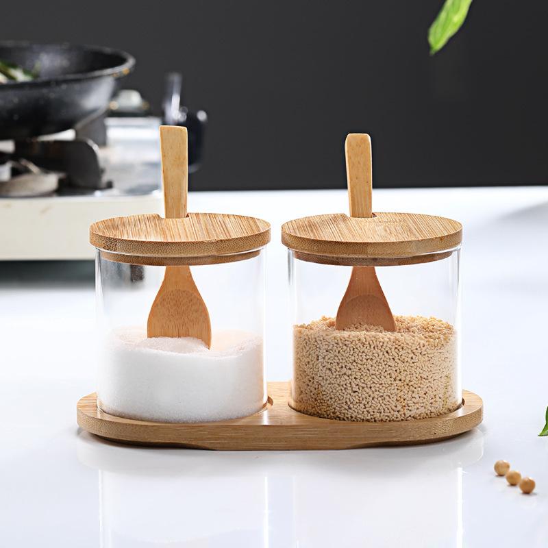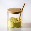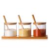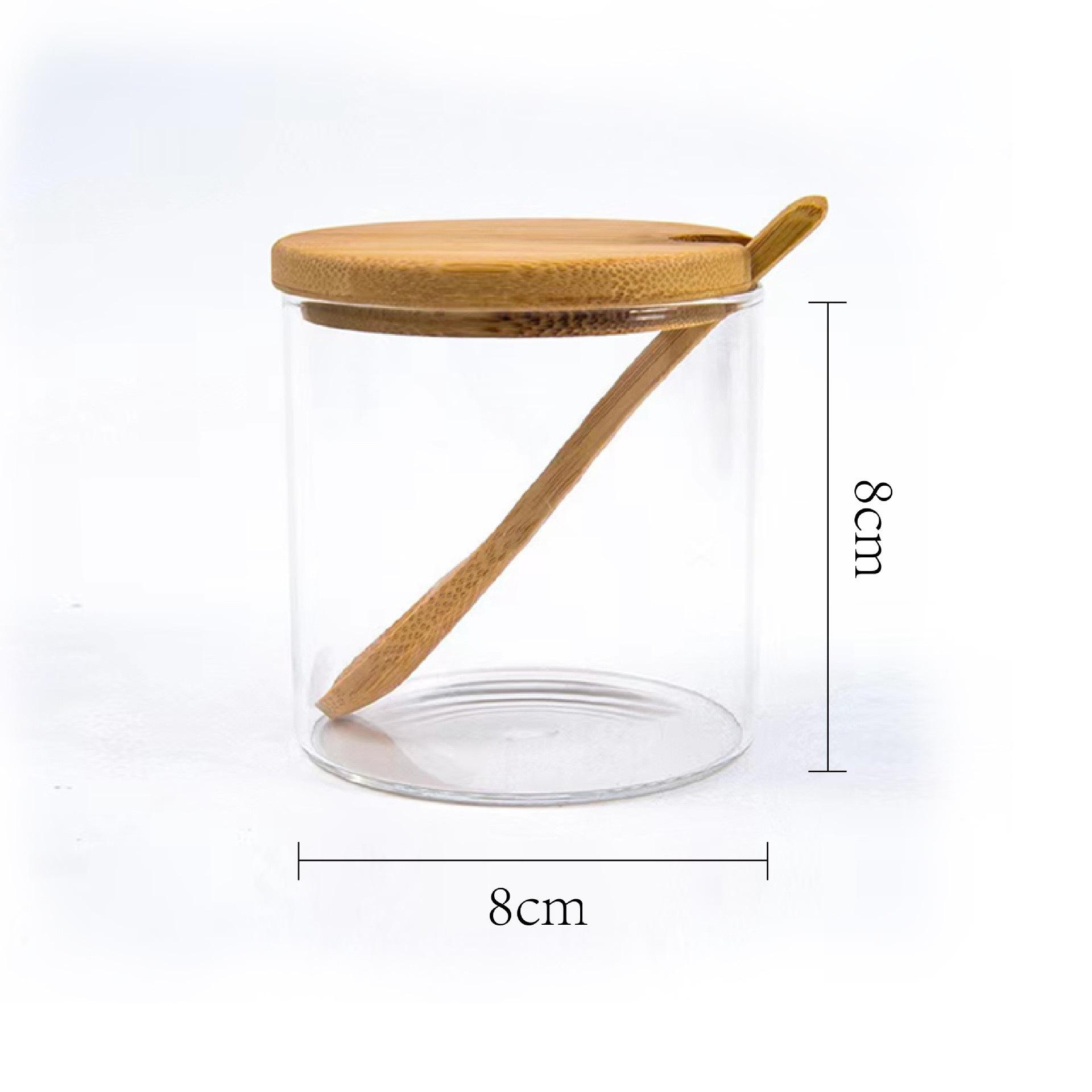 Conjunto de Potes para Tempero com Tampa de Bambu Transparente e Colher, Caixa para Tempero à Prova de Umidade, Garrafa para Tempero de Vidro Borossilicato Alto para Uso Doméstico
