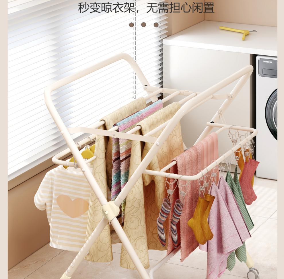 Fawn pink [comfortable style] double-pole clothes drying rack + storage basket + storage rack