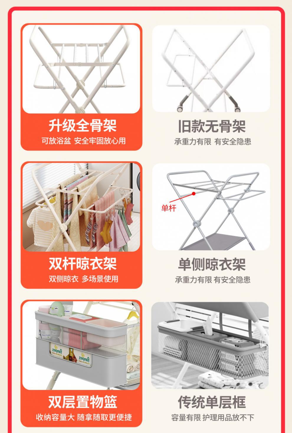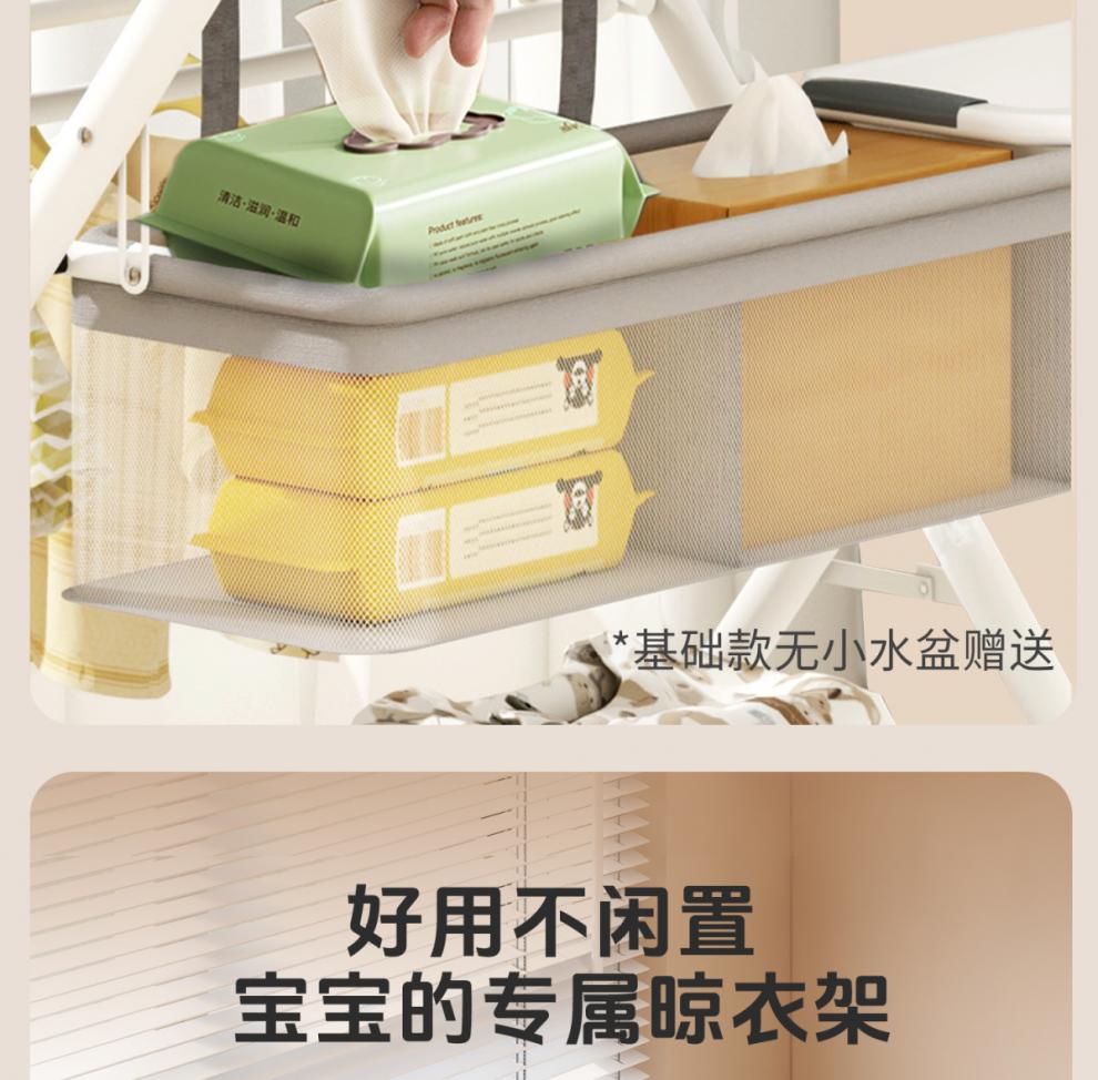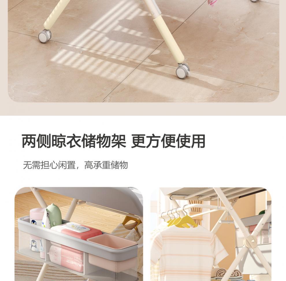 Fawn gray [comfortable style] double-pole clothes drying rack + storage basket + storage rack, Fawn pink [comf...