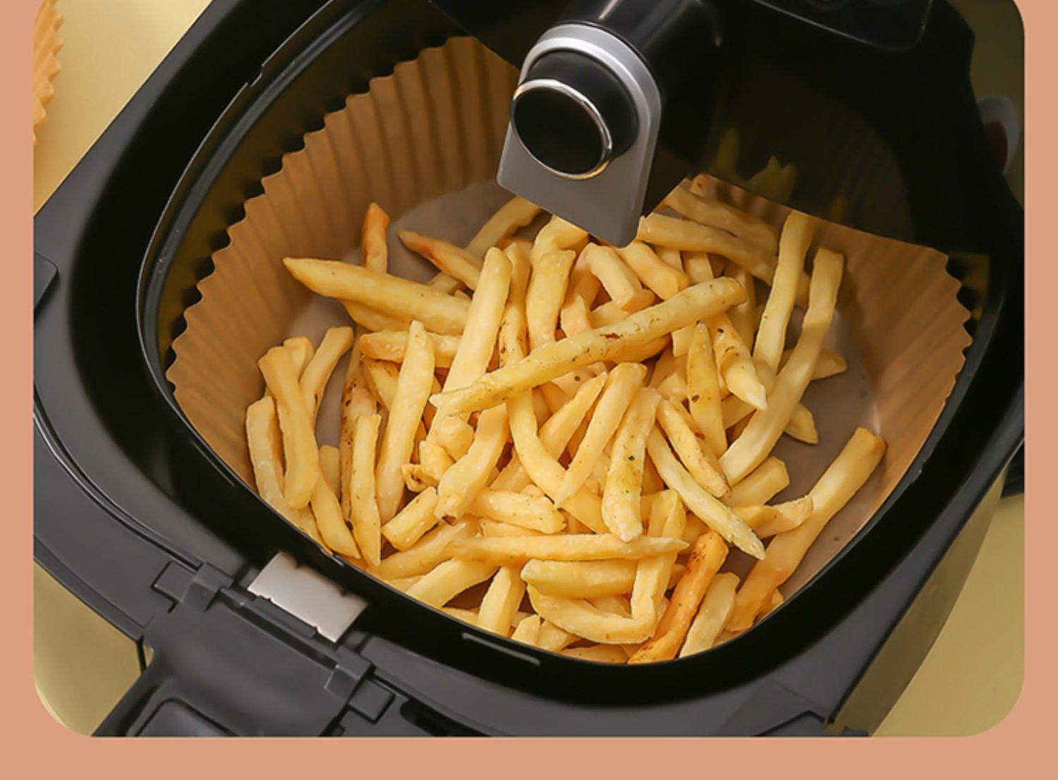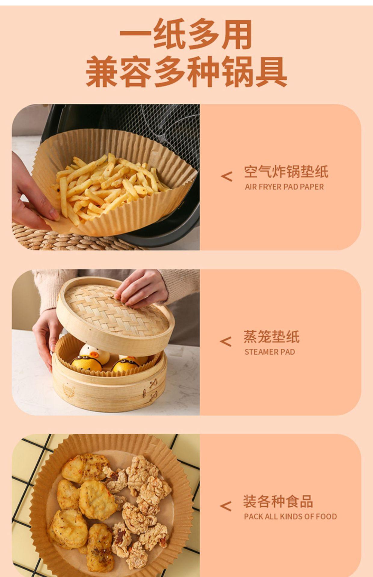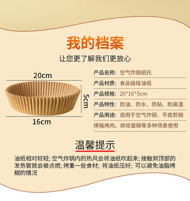 Suporte de papel para fritadeira de ar, descartável, sem lavagem, redondo, absorvente de óleo, resistente a altas temperaturas, para assar alimentos, silicone, prato de papel