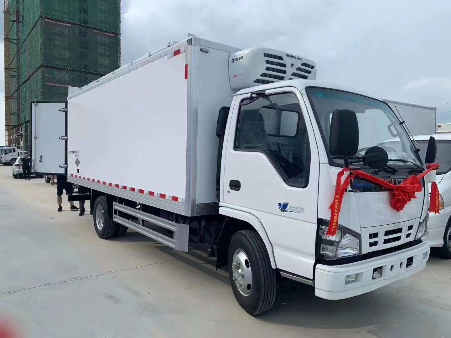 Caminhão refrigeradoRefere-se a um veículo de transporte furgão fechado usado para manter a temperatura de mercadorias congeladas ou frescas. Um caminhão refrigerado é um veículo de transporte refrigerado especial equipado com uma unidade de refrigeração e um compartimento isolado com poliuretano. Caminhões refrigerados podem ser classificados por fabricante, capacidade de carga do chassi e tipo de compartimento. Caminhões refrigerados são comumente usados para transportar alimentos congelados (caminhões refrigerados), produtos lácteos (caminhões de laticínios), produtos químicos, vegetais e frutas (caminhões de produtos frescos), vacinas e medicamentos (caminhões de vacinas médicas), produtos eletrônicos, flores, móveis de alta qualidade, etc.