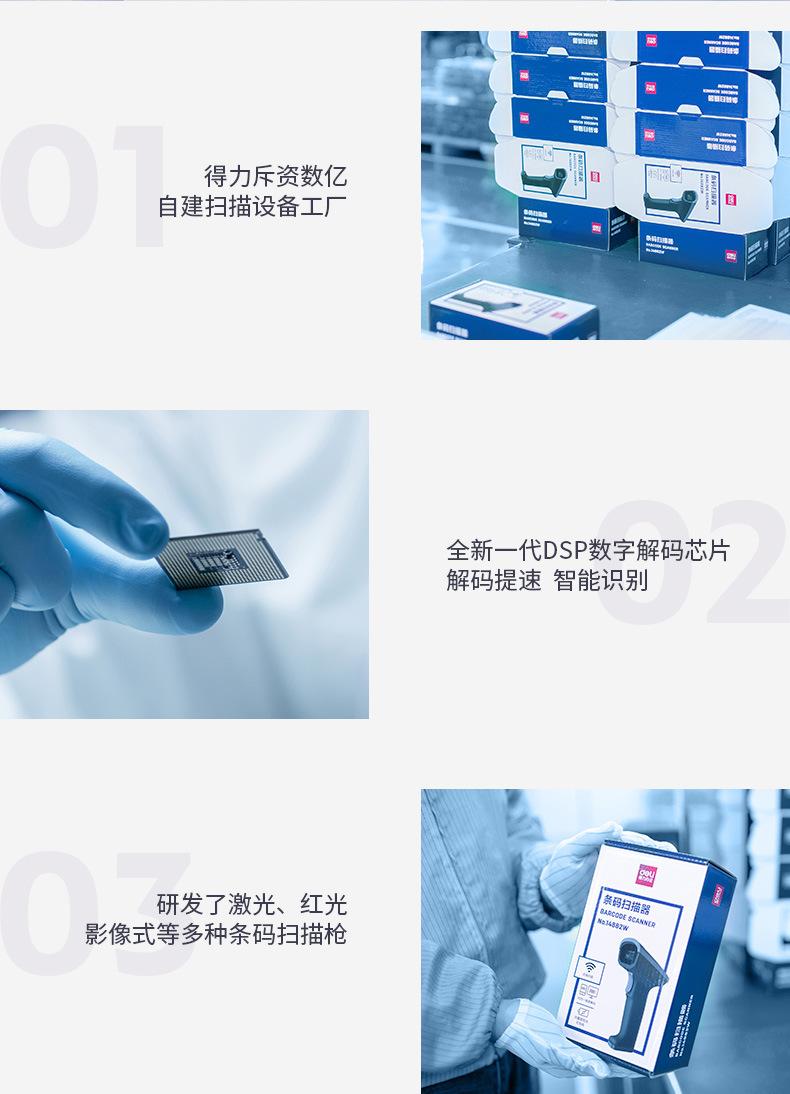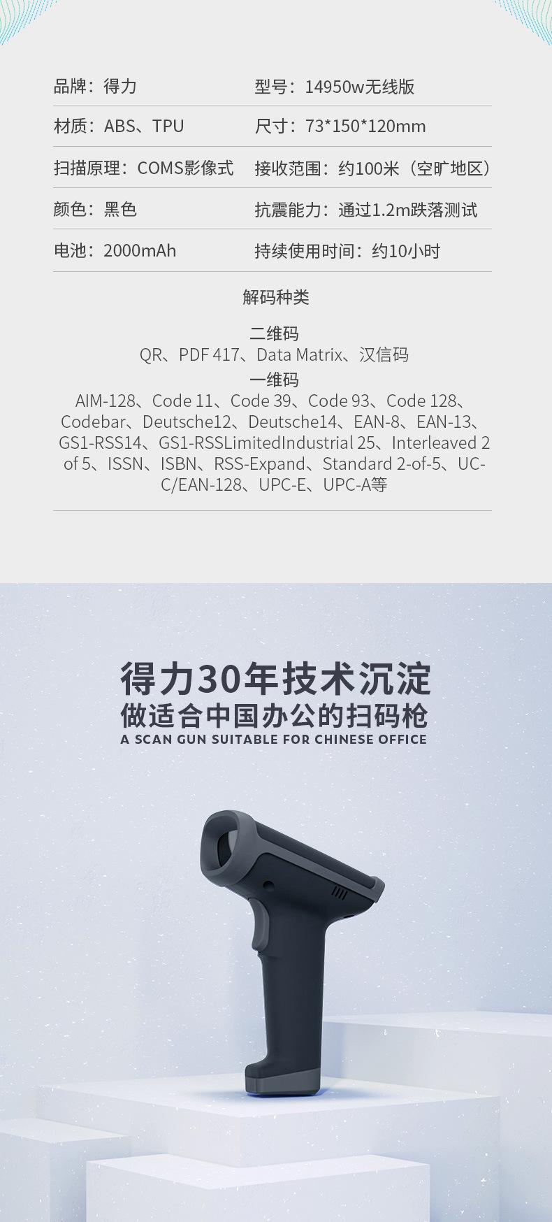 [Pistola de Leitura de Código Sem Fio Deli] Leitor de Código de Barras Identificação de Código Bidimensional Leitor de Caixa de Supermercado Leitura Bluetooth