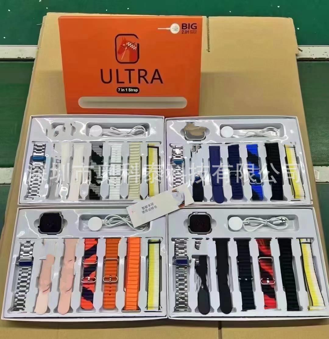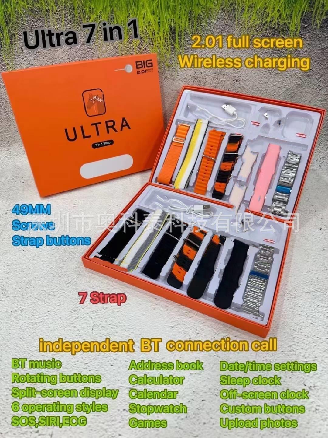 Popular Transfronteiriço 7 em 1 Ultra Set Smart Watch Bluetooth Chamada Frequência Cardíaca Esportivo 7 Pares de Pulseiras