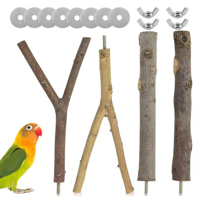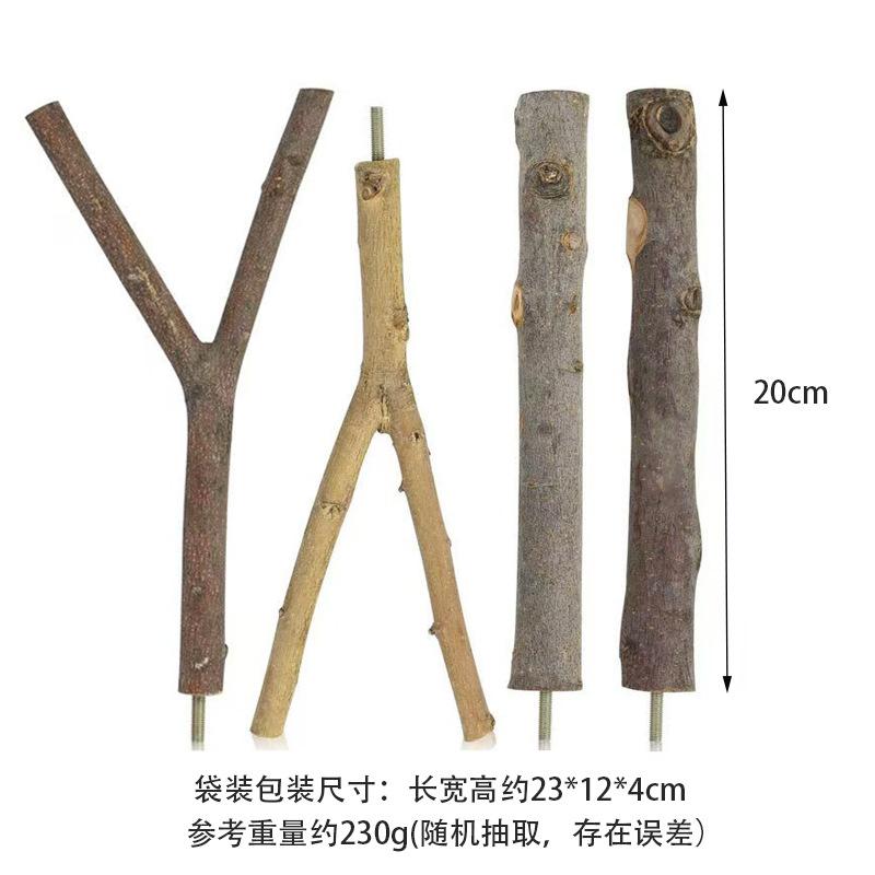 Conjunto Combinado de Suporte de Poleiro de Madeira para Papagaio e Suporte de Galho Poleiro para Pássaro Descanso Madeira para Roer e Bastão para Afiar as Garras Brinquedo para Papagaio