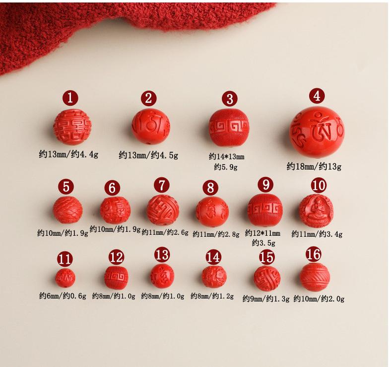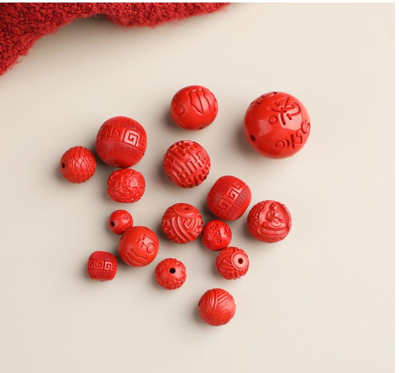 Lidai alto teor de água areia voadora mantra de seis palavras contas redondas contas esculpidas acessórios de cinábrio vermelho acessórios de joalheria DIY