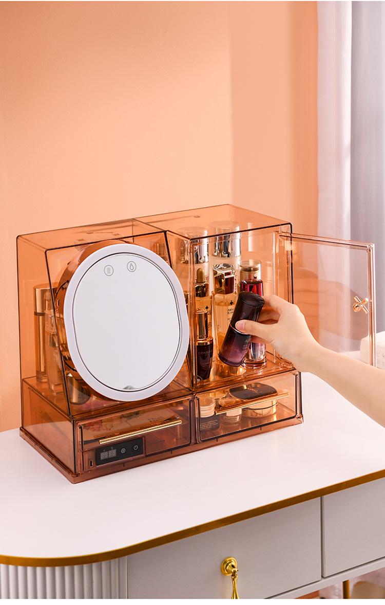 Caixa de Armazenamento de Cosméticos de Mesa à Prova de Poeira Penteadeira Produtos de Cuidados com a Pele Porta Batom Multifuncional Caixa de Acrílico Transparente