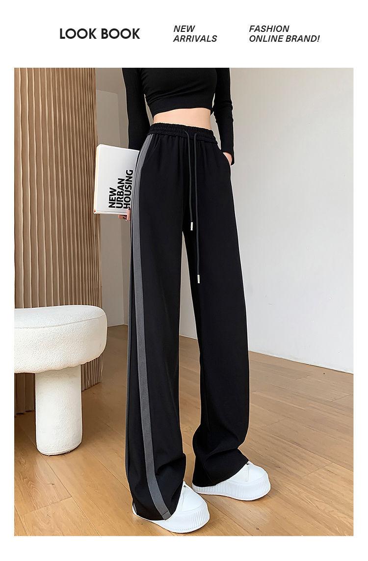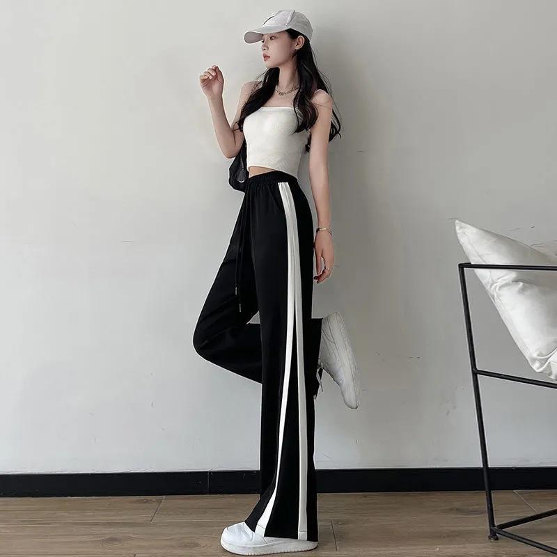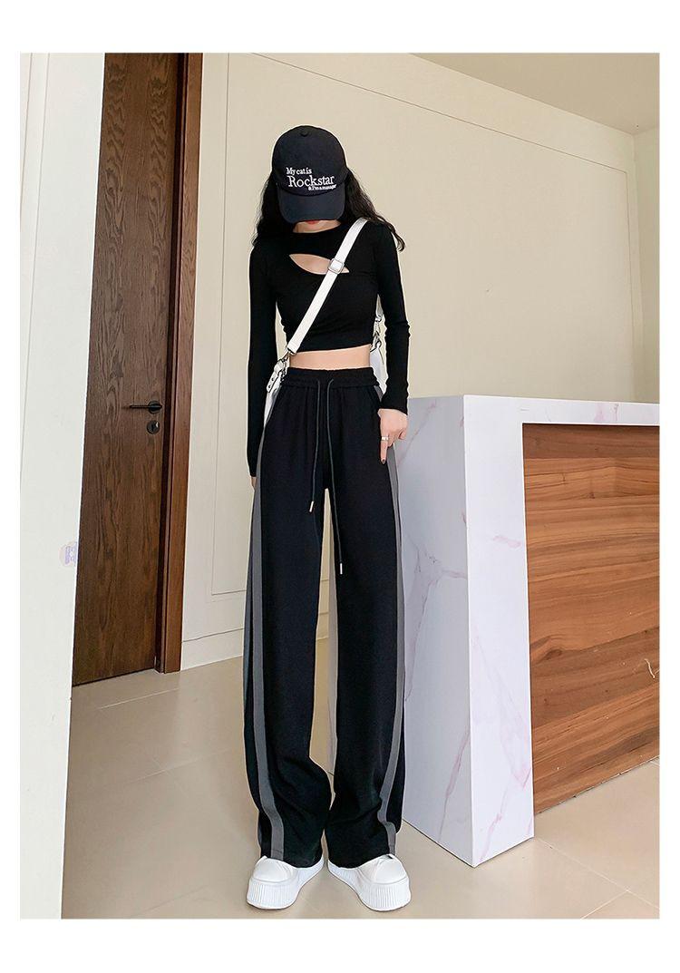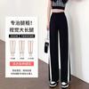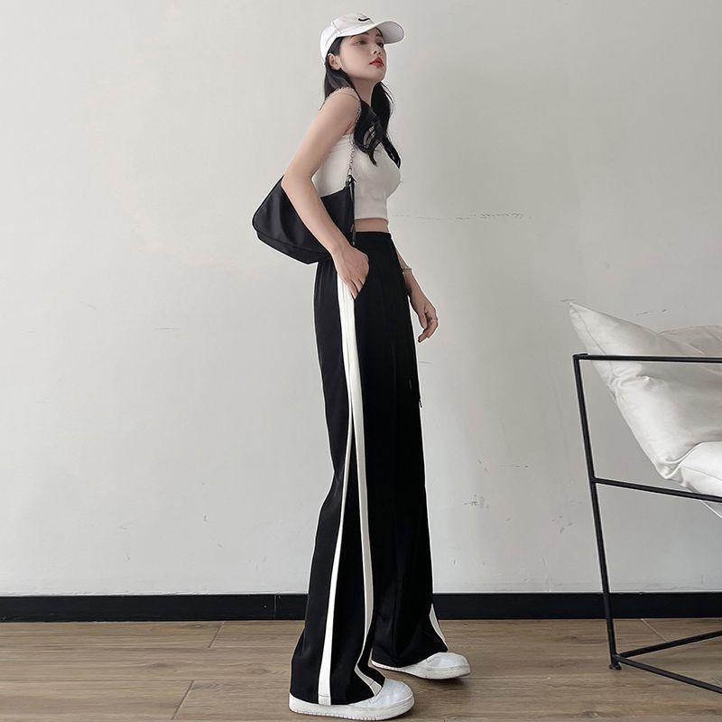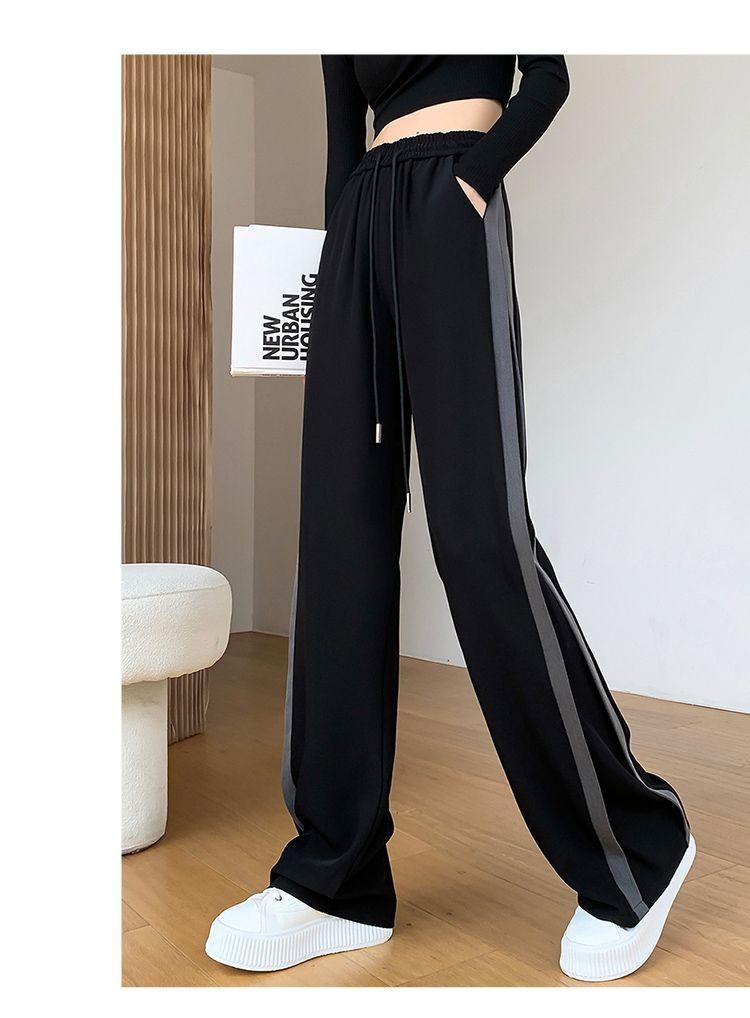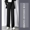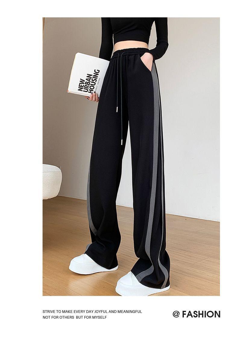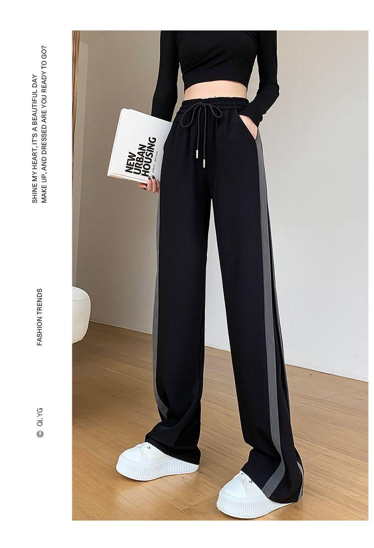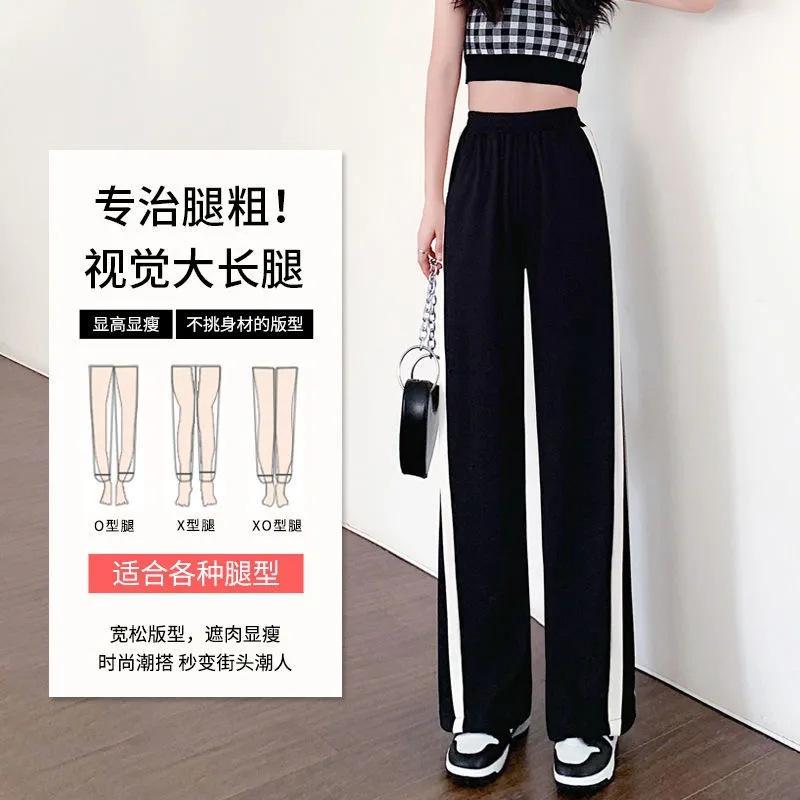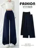 Calças Retas com Fenda para Mulheres Primavera e Verão Novas Tamanho Grande mm Preto Calças de Perna Larga Tendência Versátil Soltas Casuais