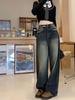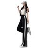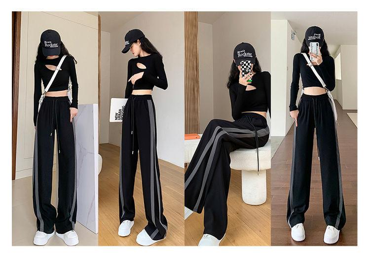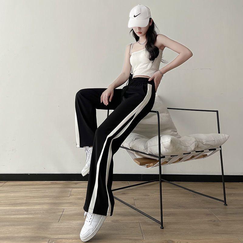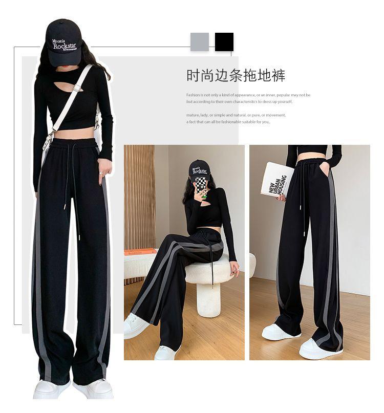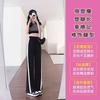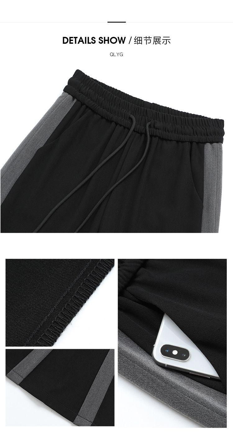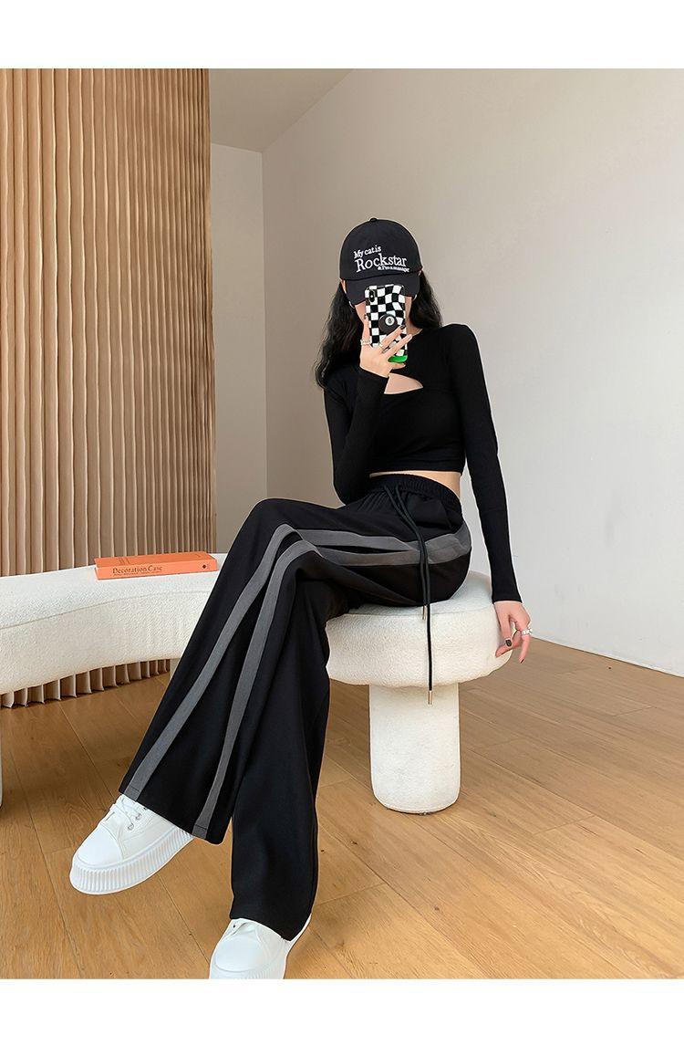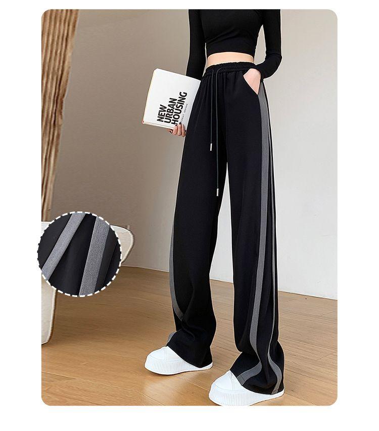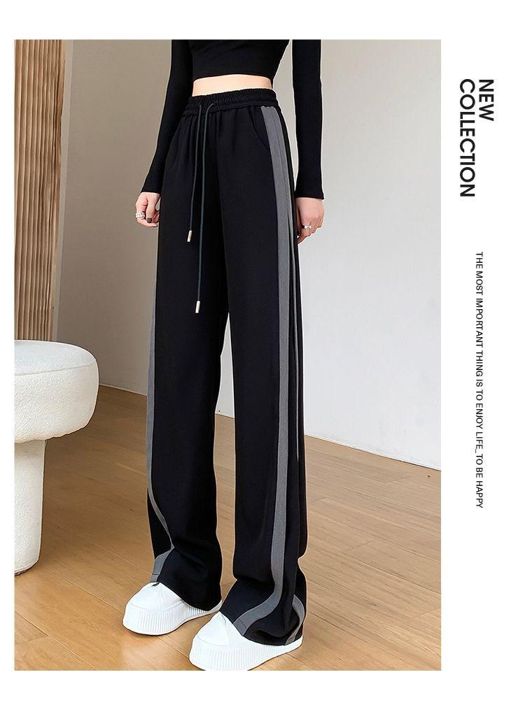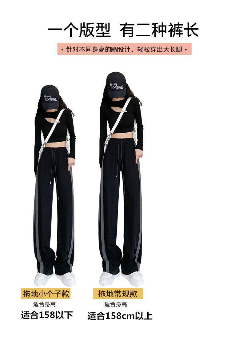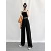Calças Retas com Fenda para Mulheres Primavera e Verão Novas Tamanho Grande mm Preto Calças de Perna Larga Tendência Versátil Soltas Casuais