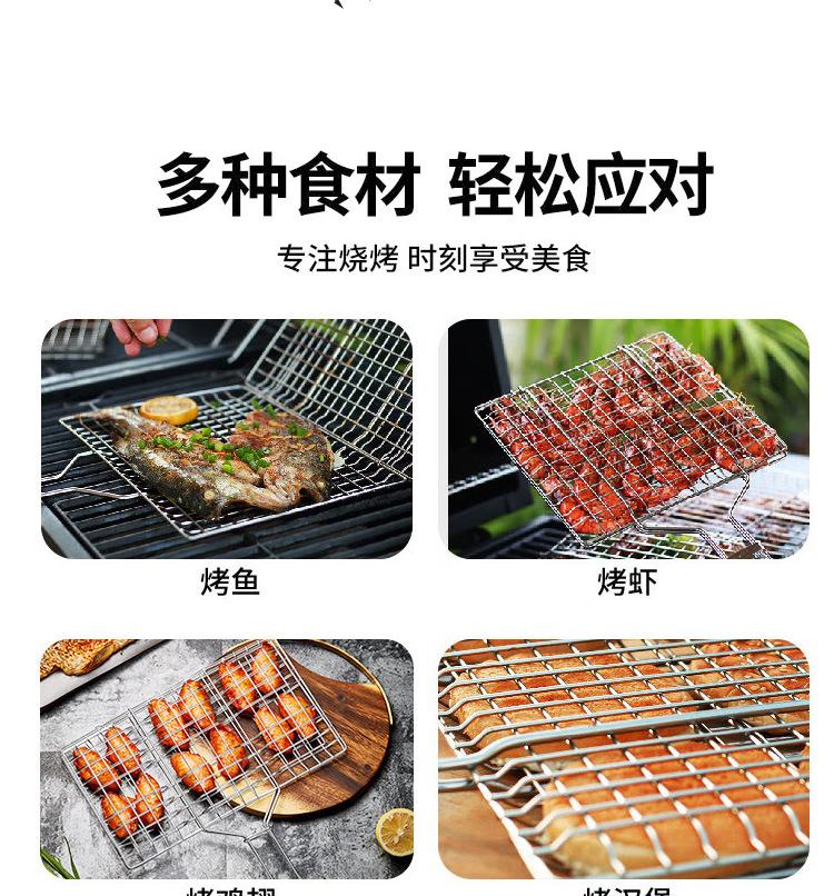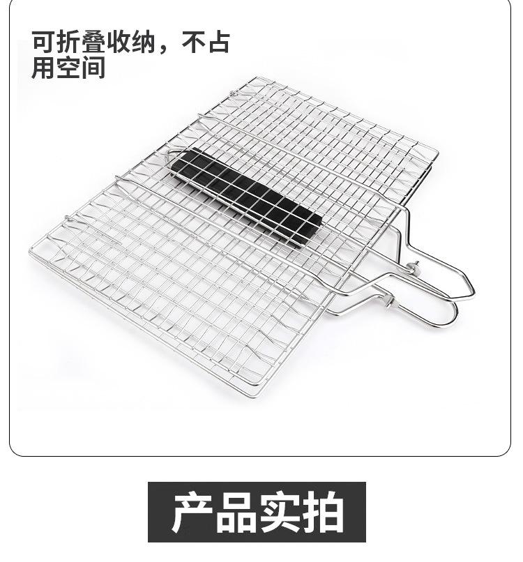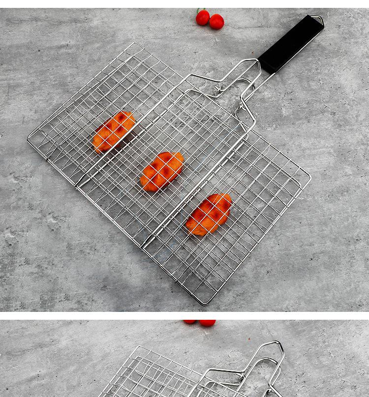 Rede para Churrasqueira de Aço Inoxidável 304 Dobrável para Exterior com Clipe Rede Portátil Quadrada para Grelhar Clipe para Peixe Rede Removível para Churrasqueira