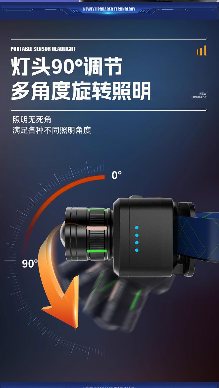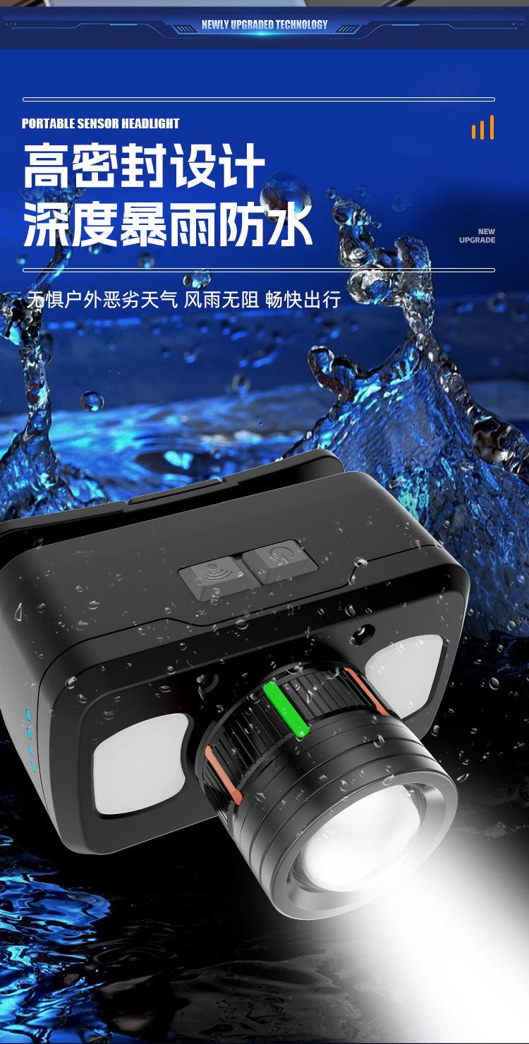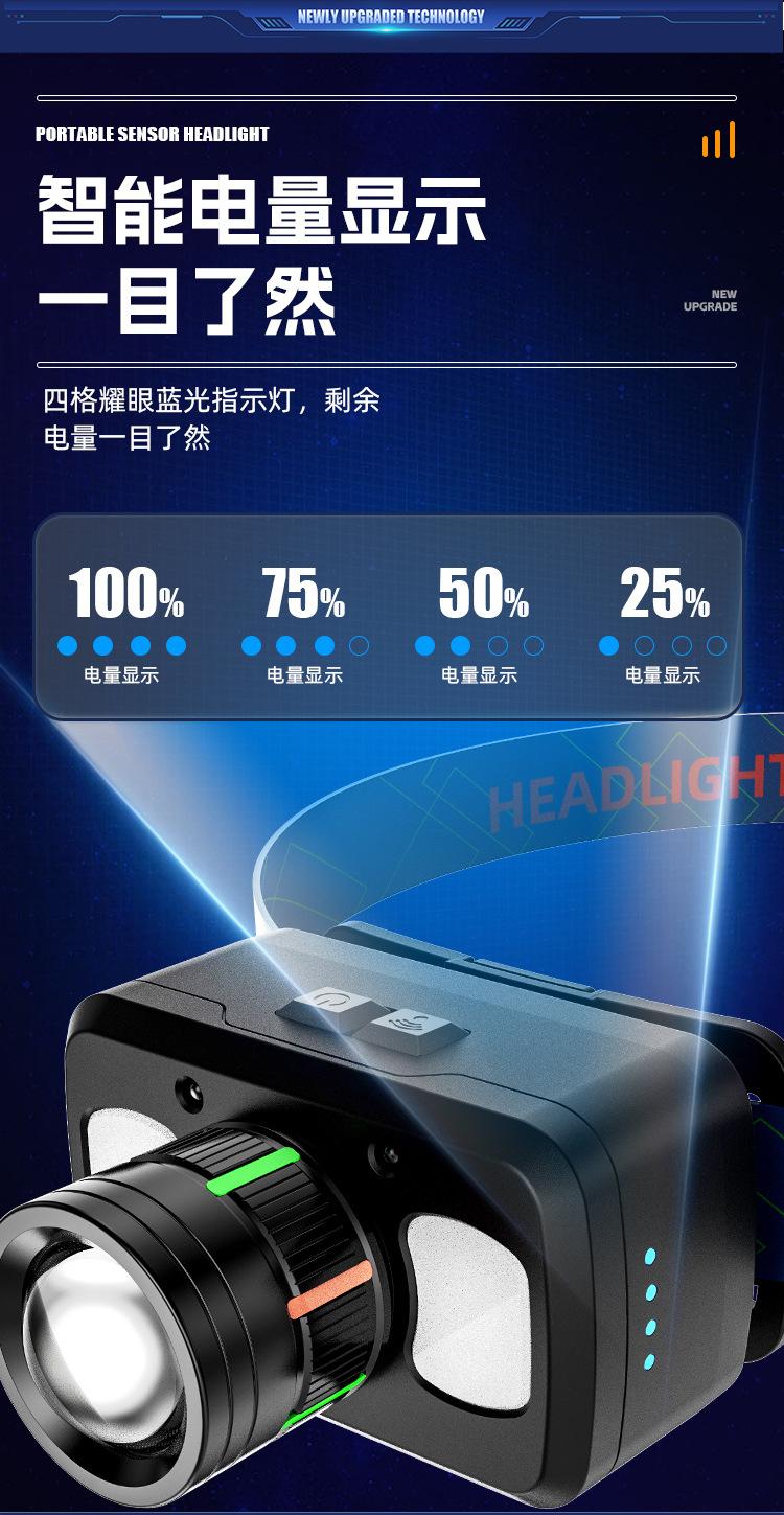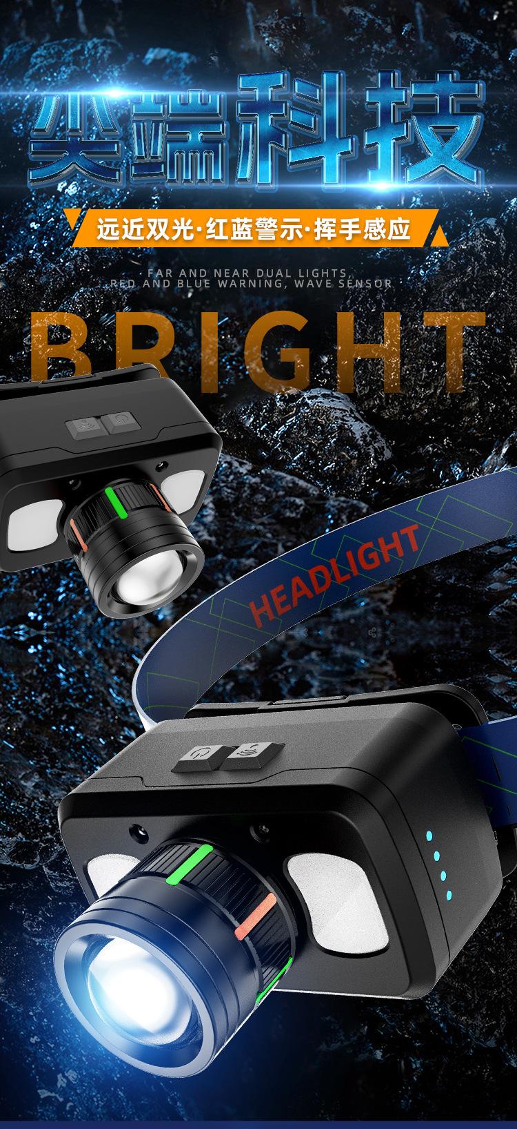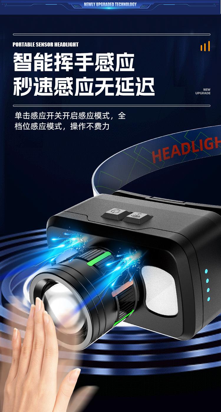 Novo farol de LED com zoom de indução de longo alcance, carregamento USB, luz forte, pesca noturna ao ar livre, à prova d'água, multifuncional, farol pequeno