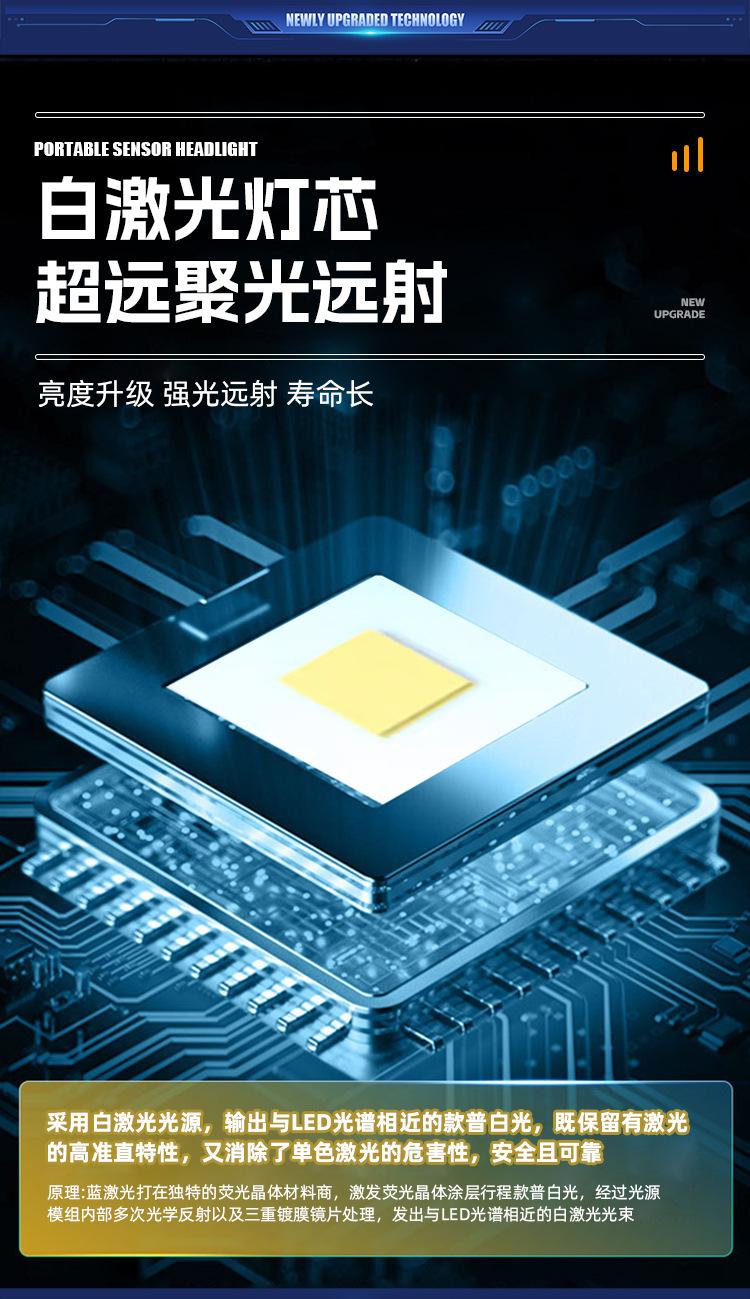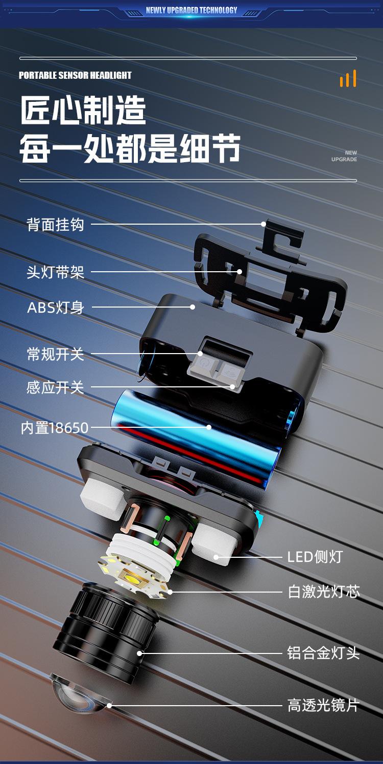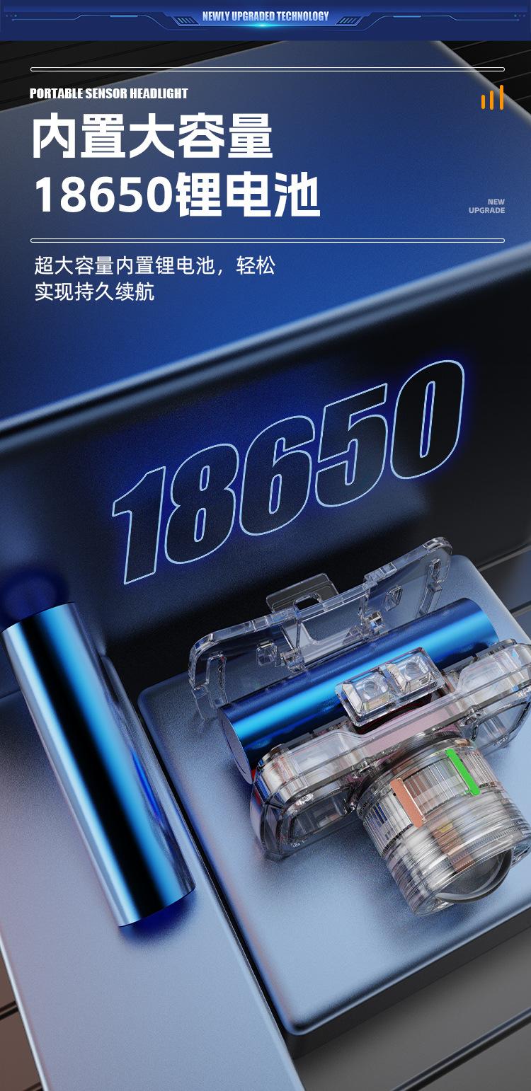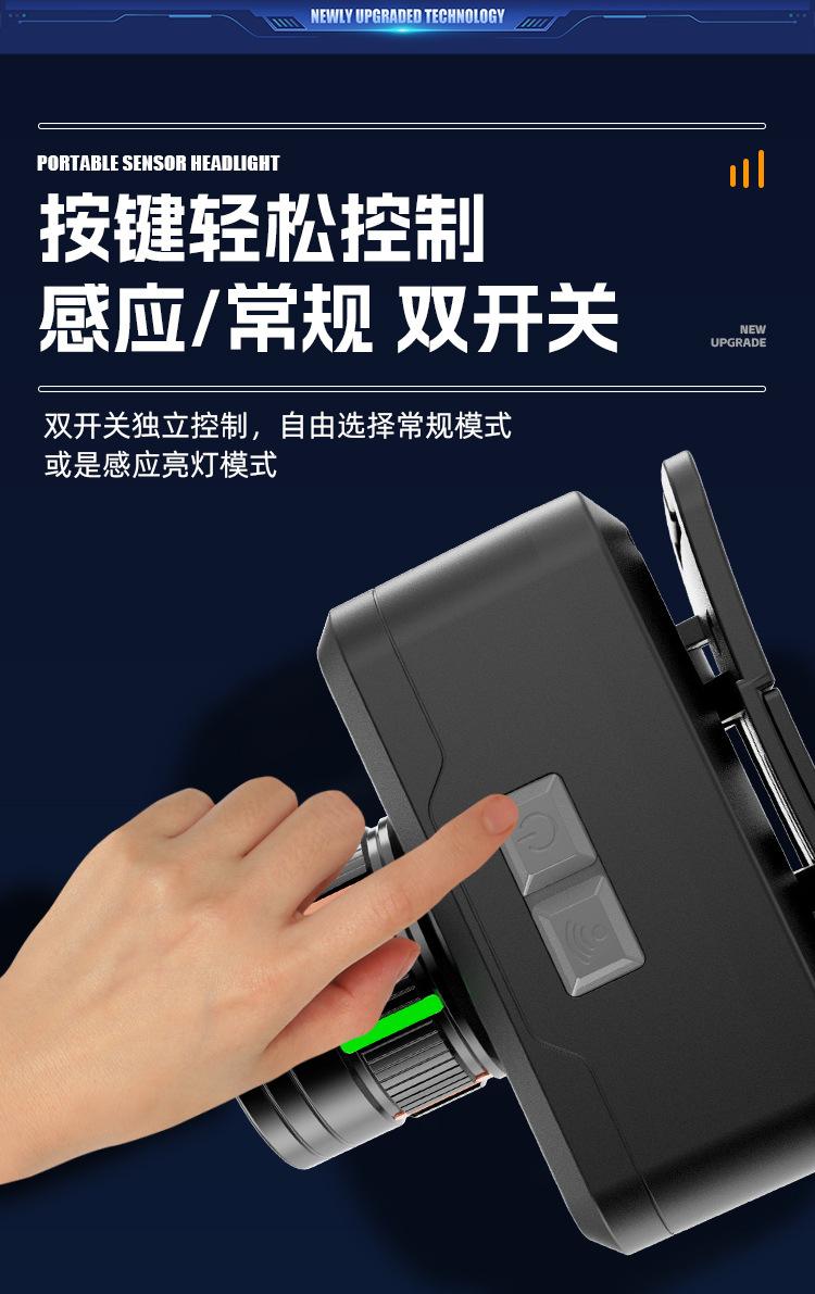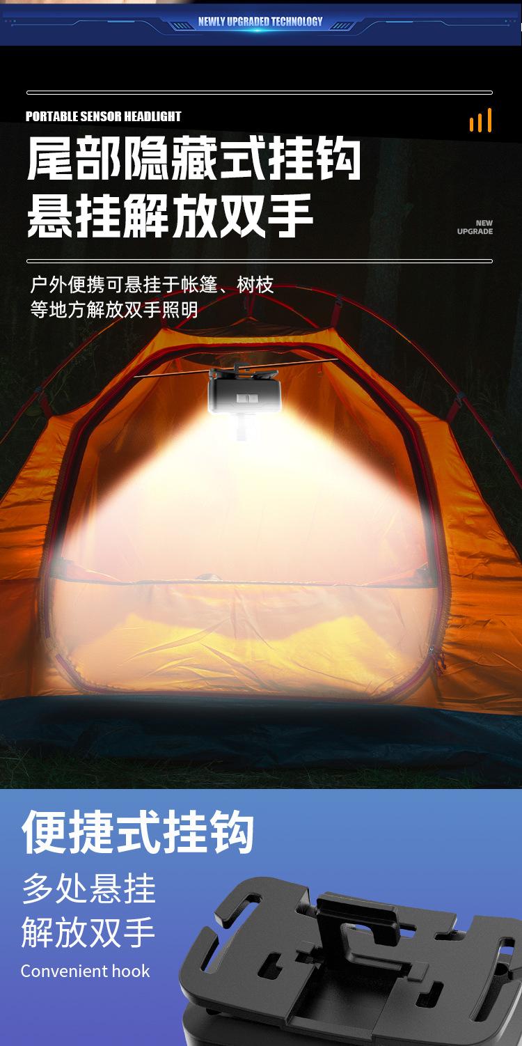 Novo farol de LED com zoom de indução de longo alcance, carregamento USB, luz forte, pesca noturna ao ar livre, à prova d'água, multifuncional, farol pequeno