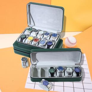 Caixa de armazenamento de relógio portátil à prova de poeira verde escuro com zíper caixa de relógio caixa de joias de relógio simples caixa de relógio atacado