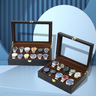 Bandeja de armazenamento de relógio de grande capacidade, bandeja de exibição de relógio de madeira com várias grades, bandeja de joias de alta qualidade