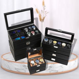 Os fabricantes recomendam caixa de relógio de couro PU série preta multi-posição caixa de armazenamento de relógio caixa de relógio de presente quadrado doméstico