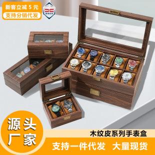 Retro grão de madeira caixa de relógio de couro do plutônio caixa de presente de jóias de madeira cross-border venda quente caixa de armazenamento de relógio