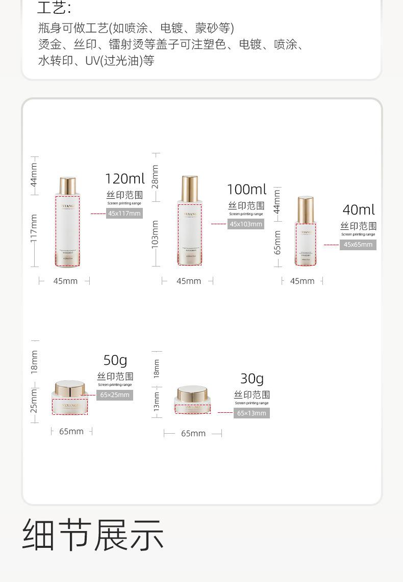 Conjunto de Skincare Simples e Sofisticado Frasco de Vidro 40ml Essência Frasco de Amostra Cosmética Tampa UV Em Estoque Material de Embalagem Earth Generation 30g 50g 40ml 100ml 120ml