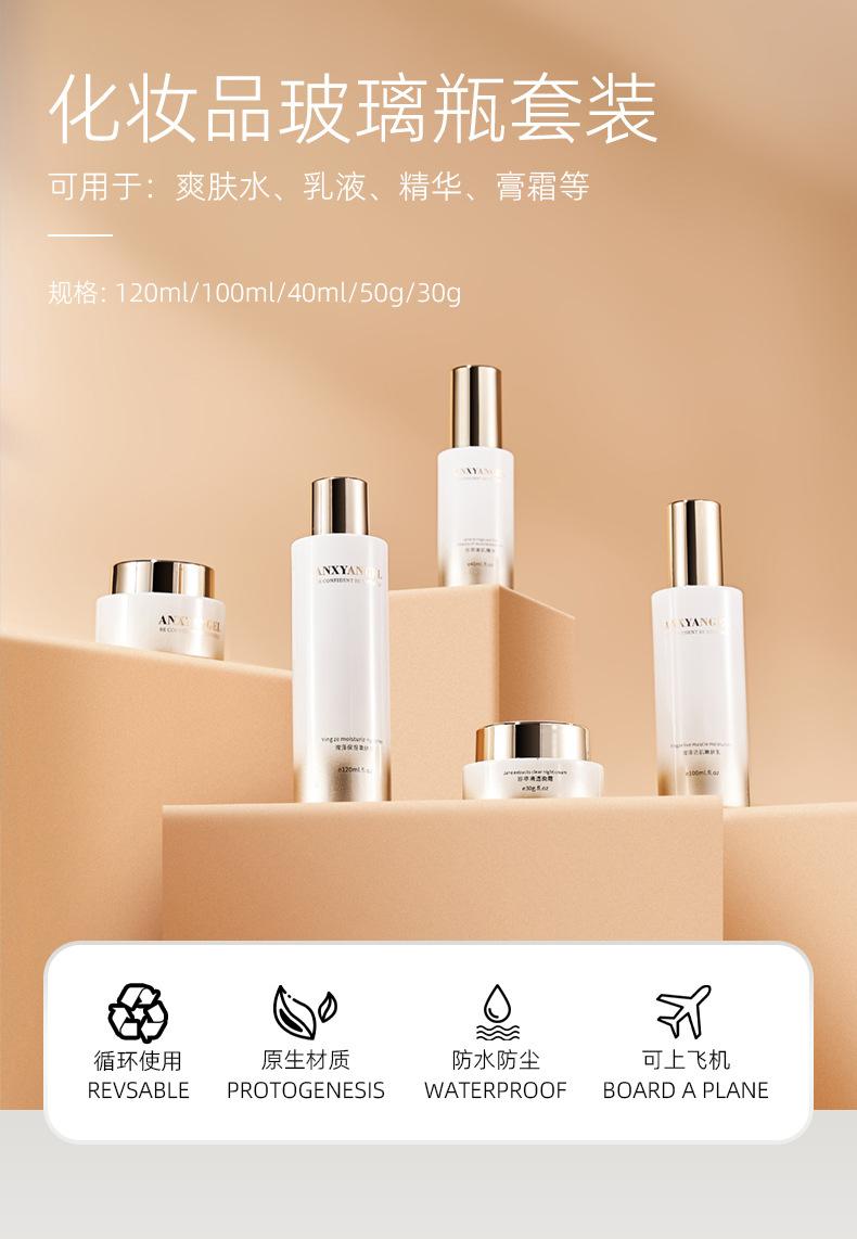 Conjunto de Produtos de Cuidados com a Pele Casuais de Alta Qualidade Frasco de Vidro 40ml Essência Cosméticos Sub-Frasco Tampa UV Material de Embalagem Pronta
