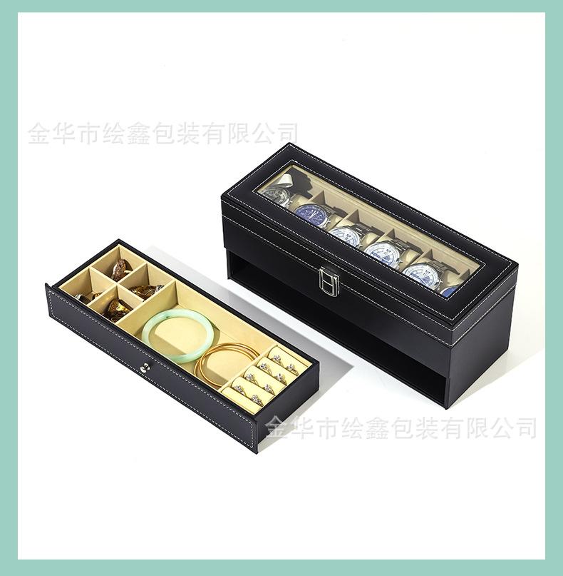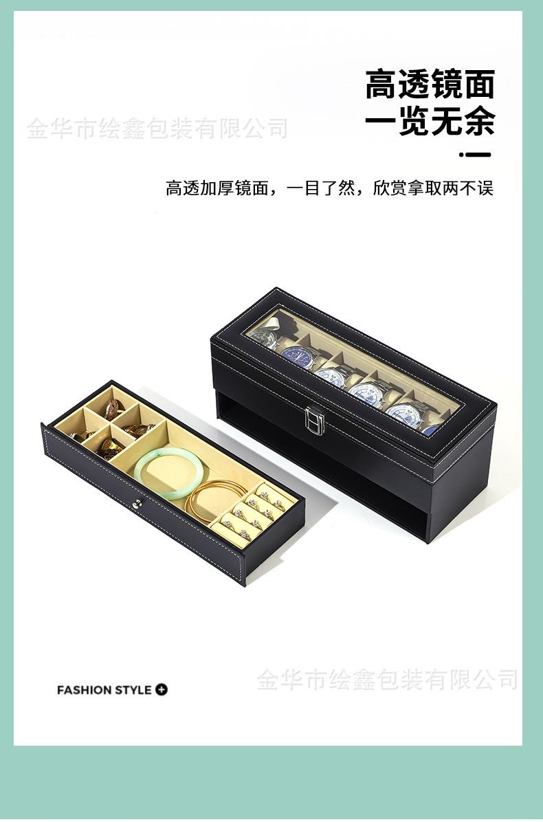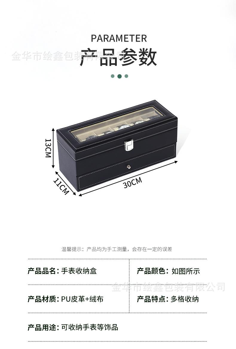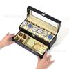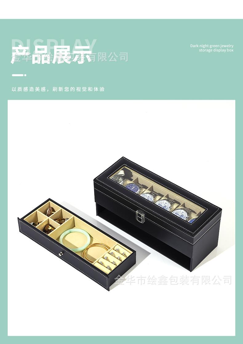 Nome do Produto: Caixa de Armazenamento de Relógios e Joias de Couro PU de Camada Dupla com 6 Compartimentos
