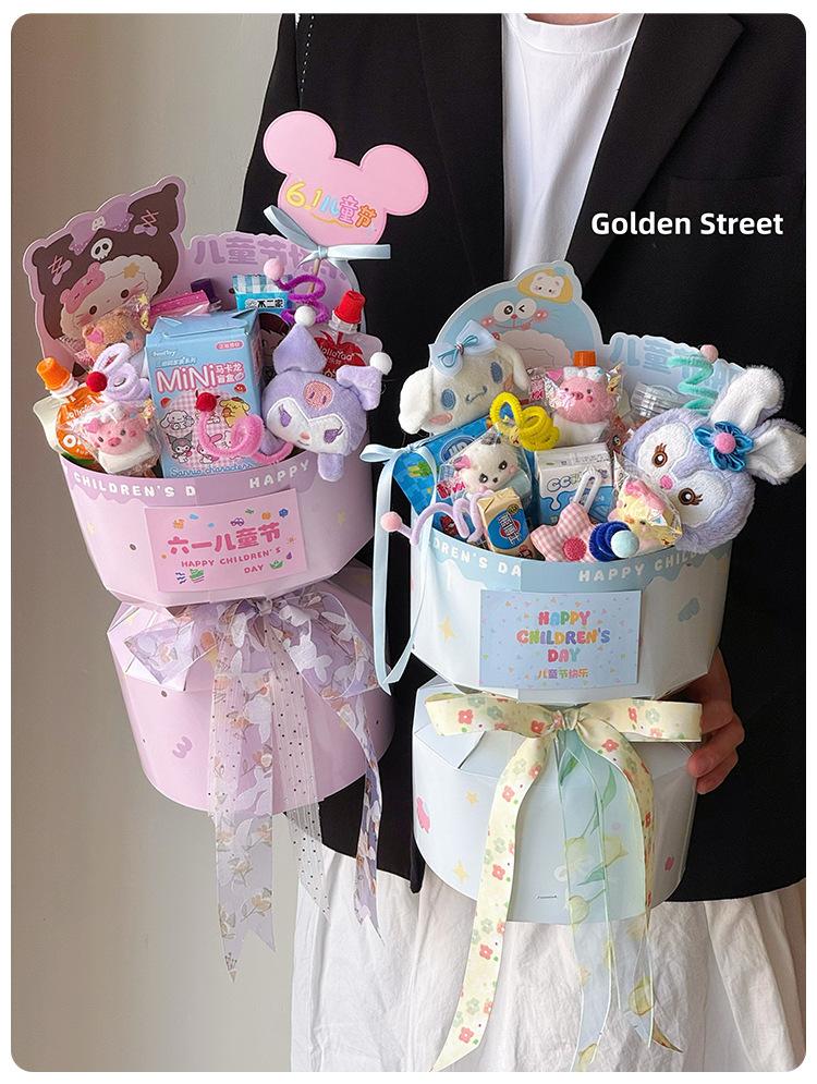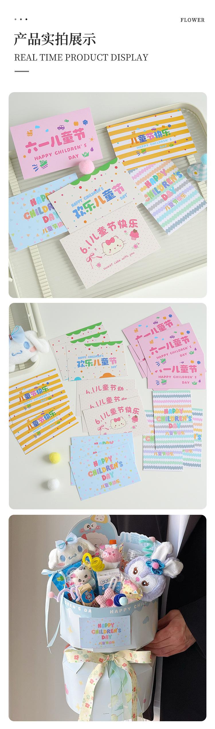 Cartão do dia das crianças novo 2025 cartão de felicitações manuscrito de desenho animado acessórios de buquê de lanches materiais florais em estoque lote
