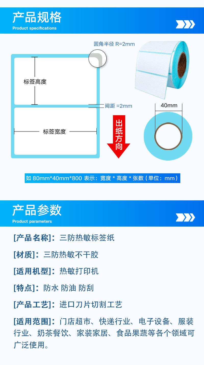 40*30*1000 (3 volumes) Three-proof blue grid thermal paper