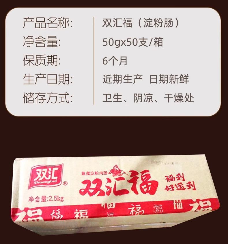 Linguiça de Presunto Shuanghui Shuanghui Fu 50g Caixa Inteira Raiz Grande Linguiça de Amido Cozida no Vapor Churrasco Lazer Pronta para Comer Linguiça de Presunto