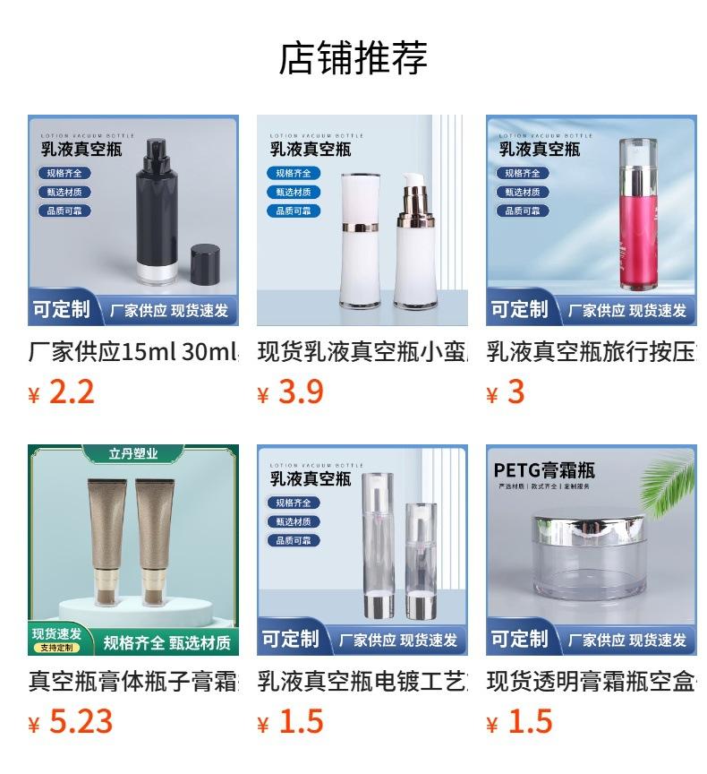 Frasco a Vácuo para Loção, Frasco Dispensador Tipo Pressão, Frasco Vazio de Plástico Tamanho Viagem, Frasco Cosmético para Essência, Frasco Atacado em Estoque