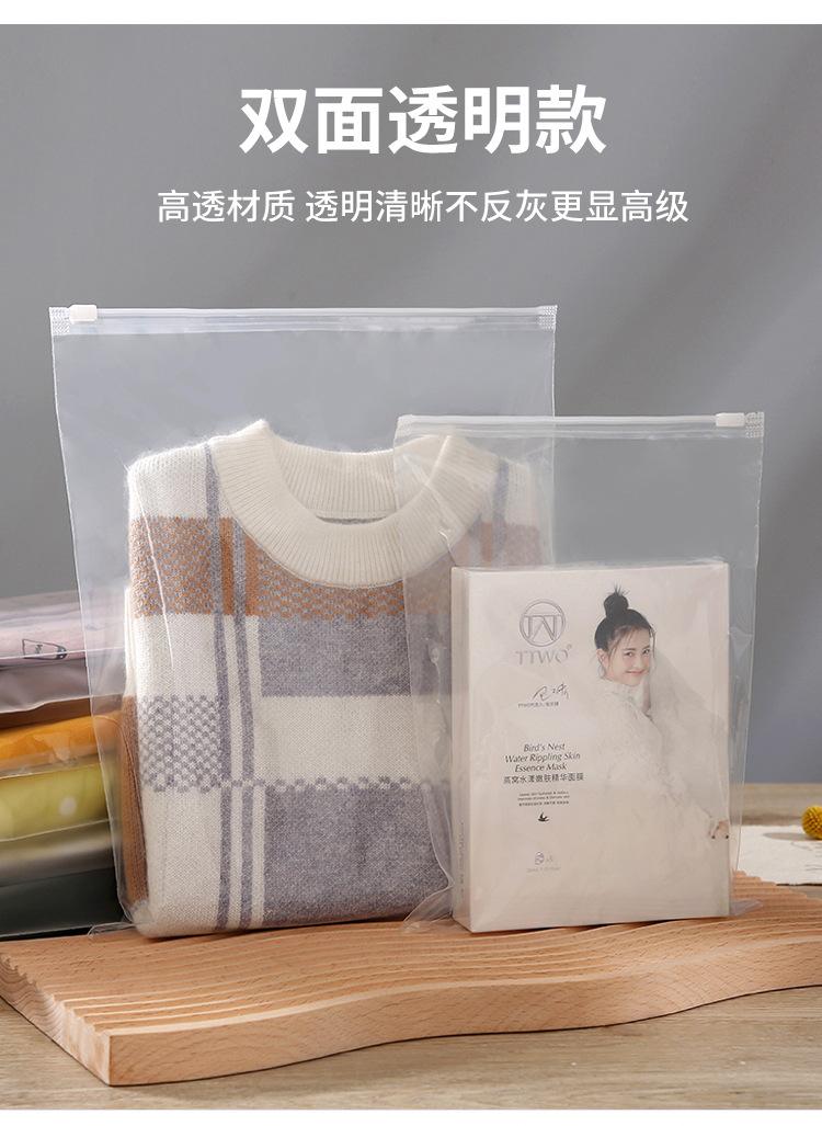 Saco Transparente Fosco de PE com Zíper Saco de Embalagem para Roupas Saco Autovedante com Zíper Saco Plástico Saco para Meias Vestuário