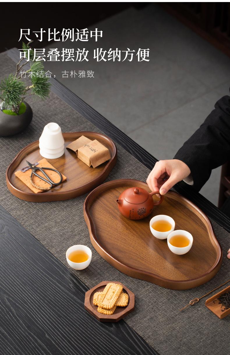 Bandeja de Chá Retangular Chinesa Bandeja Retrô Chá Sala de Estar Armazenamento Doméstico Nogueira Bambu Madeira Bandeja de Jantar