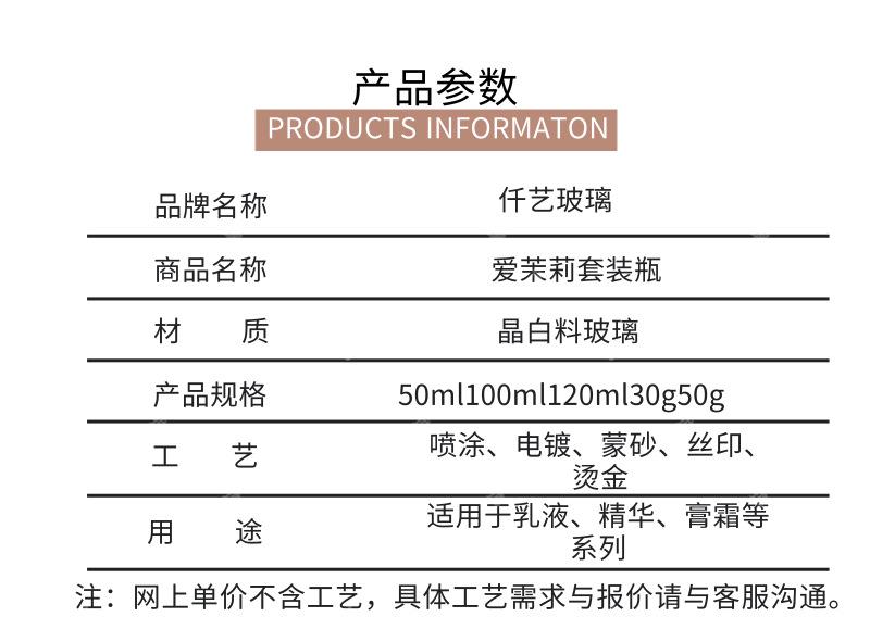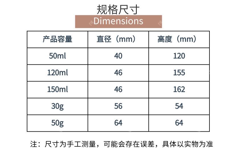 30g bottle + lid + hand pad, 50g bottle + lid + hand pad, 50ml bottle + pump head, 120ml bottle + pump head, 1...