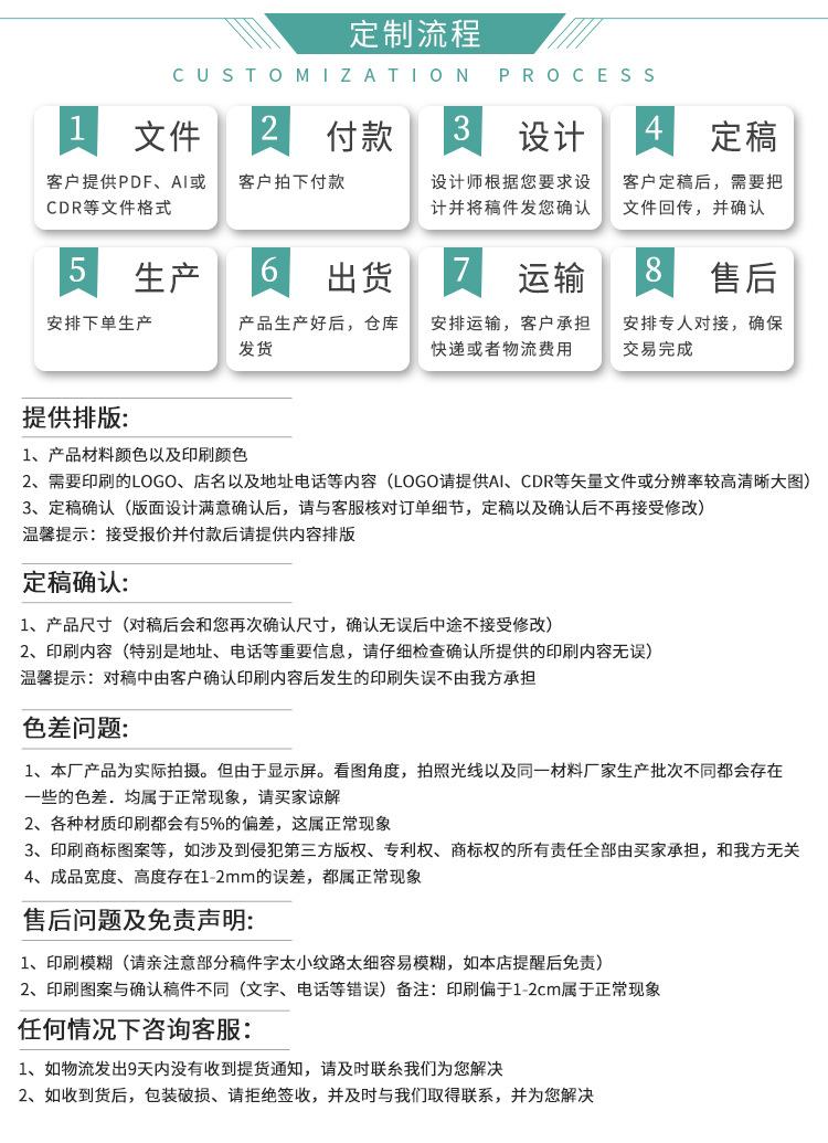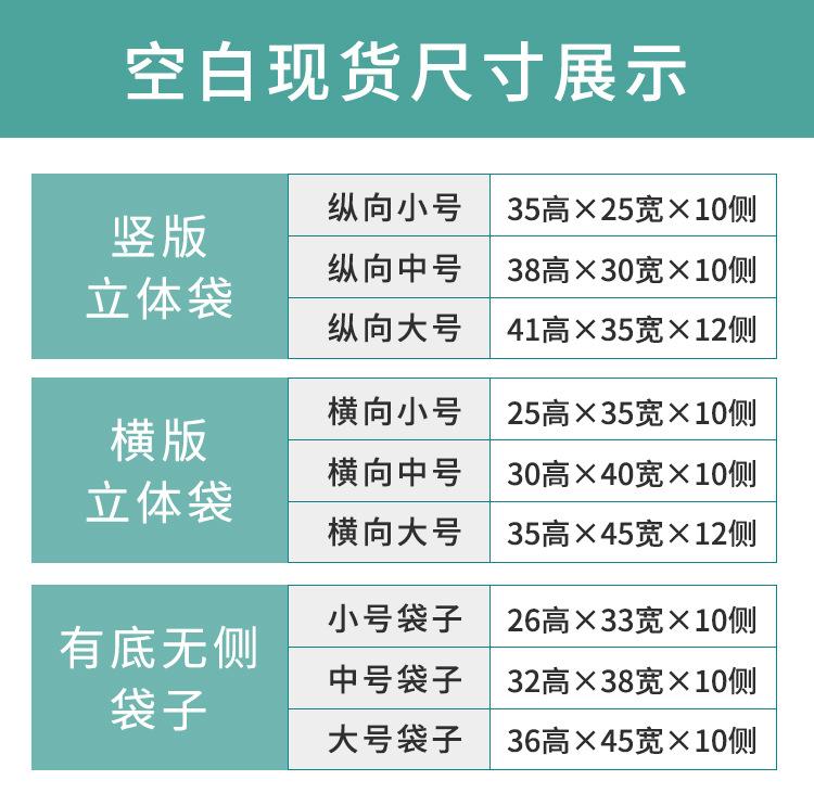 100 pieces with logo printed; height 36, width 45, side 10, large size without side