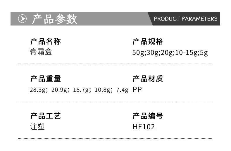 5g;white;pet, 15g;white;pet, 20g;white;pet, 30g;white;pet, 50g;white;pet