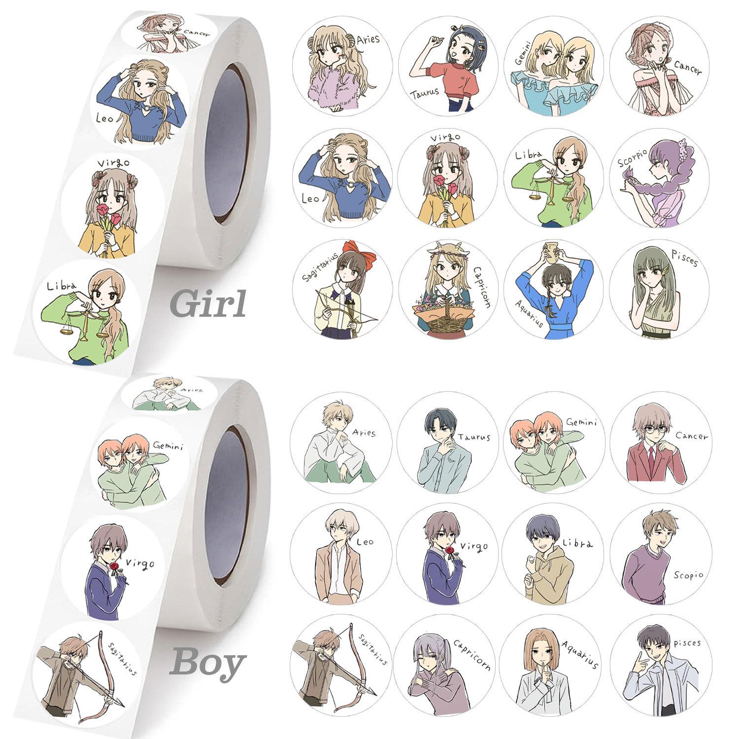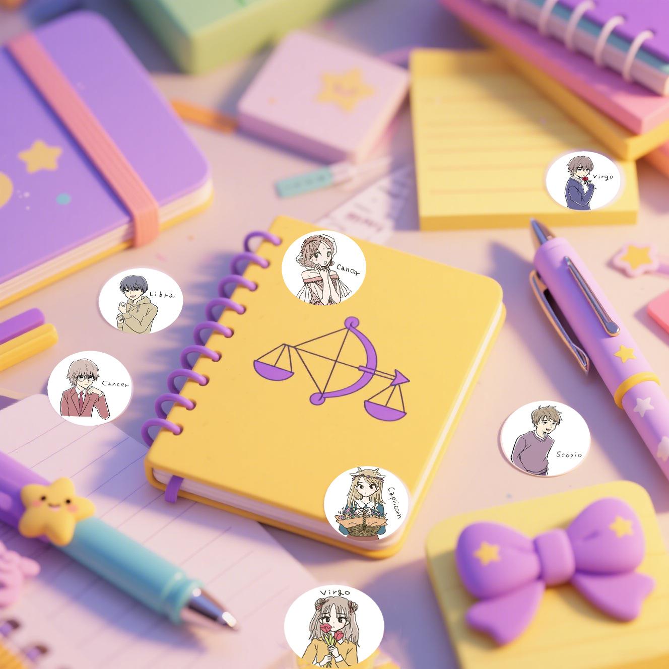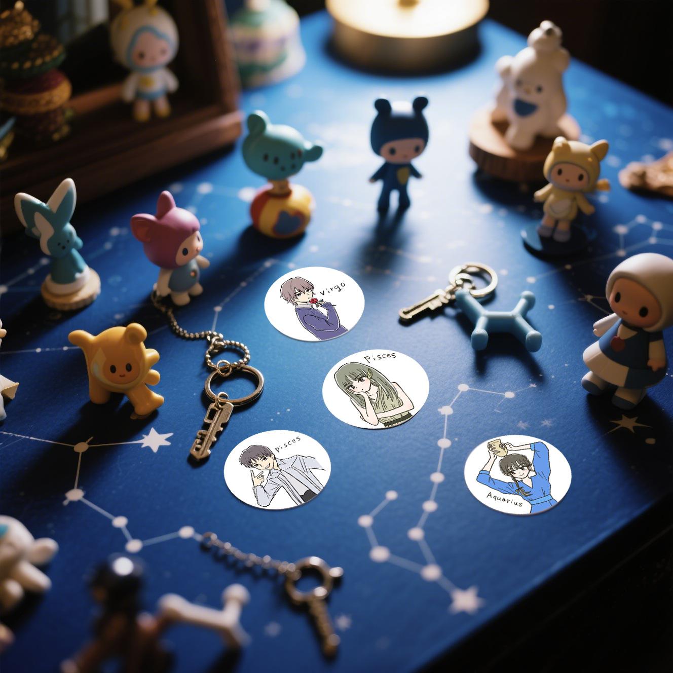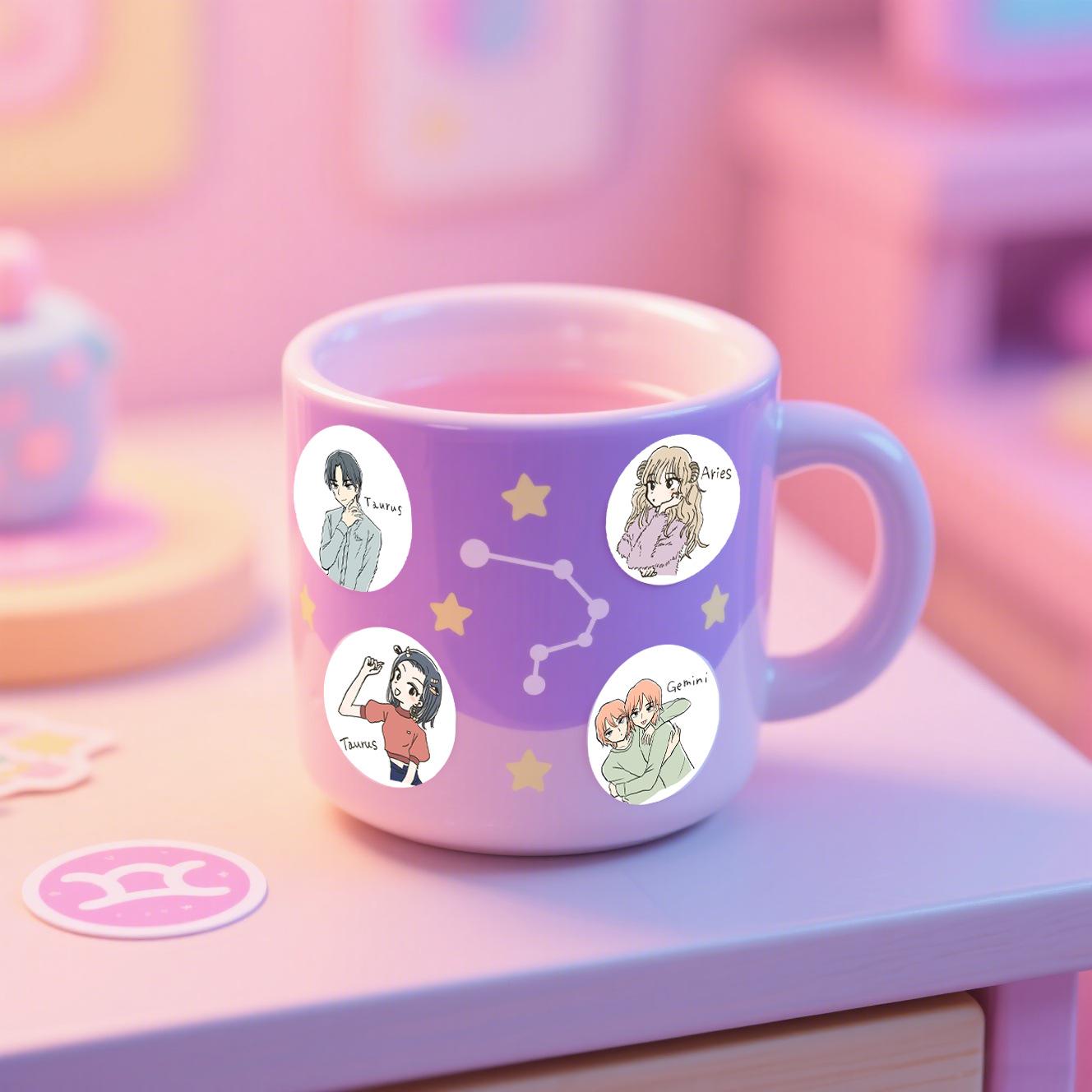 Adesivos de Grafite de Desenho Animado das Doze Constelações para Meninos e Meninas Mais Vendidos, Etiquetas Personalizadas de Desenho Animado Fofas, Adesivos de PVC 1 polegada